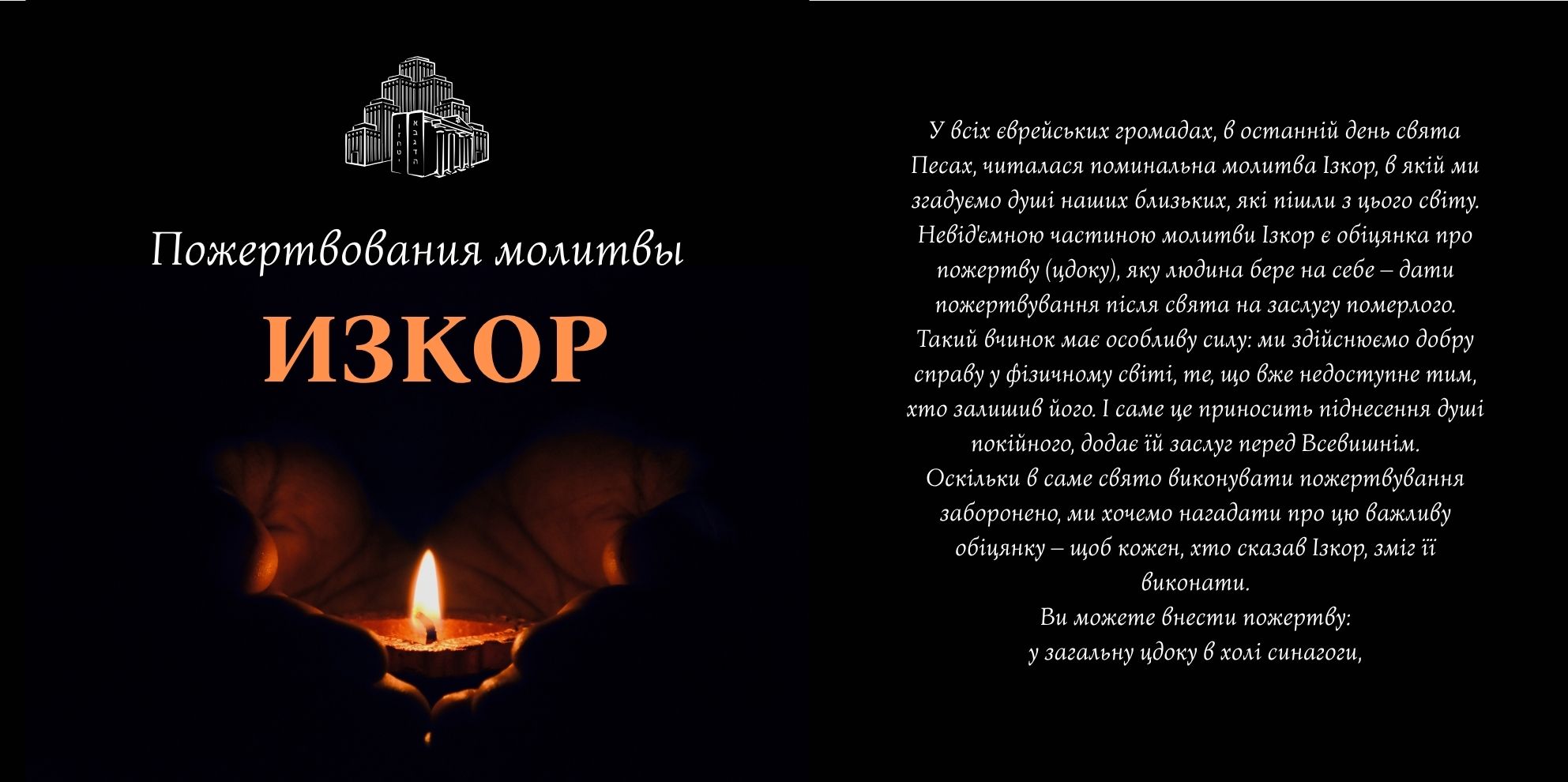 В останній день Песаха, 9 квітня, читатимуть поминальну молитву «Ізкор» за тих, чия душа покинула матеріальний світ.У центральній...
