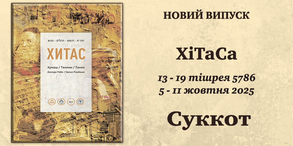 У розділі «ХіТаС» нашого сайту розміщено новий випуск ХіТаС на тиждень з 5 по 11 жовтня. «ХіТаС» у форматі PDF для прямого перегляду або скачування Суккот Зверніть увагу!Наш сайт розміщує лише відправлені йому файли, а готує до випуску «ХіТаС», як власний проєкт – STL (фонд «Шиурей Тора Любавич»), завдяки підтримці Єврейської громади Дніпра та … Новий випуск ХіТаС на нашому сайті! Глава «Суккот»