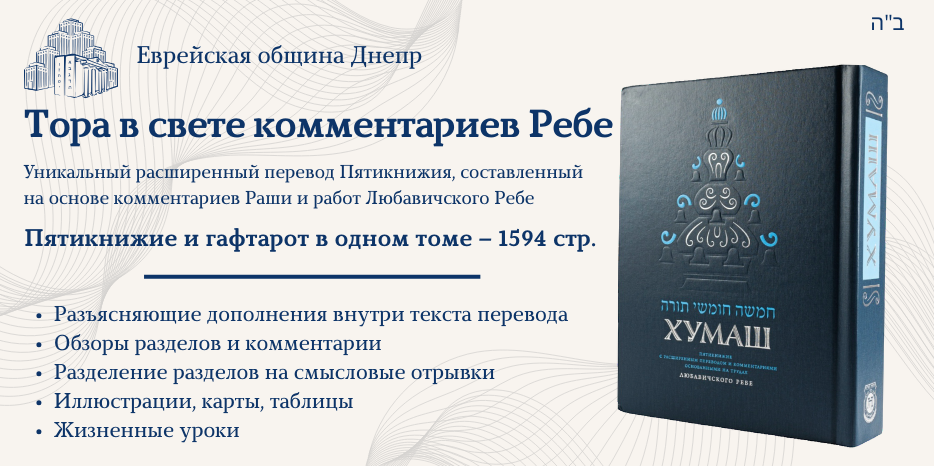 У розділі «ХіТаС» нашого сайту розміщено новий випуск ХіТаС на тиждень з 27 квітня по 3 травня. Увага! «ХіТаС» у форматі PDF для прямого перегляду або скачування – https://drive.google.com/file/d/1m_iYBXmUzuBQQ0AkQMjhaiG1cRX0DKSV/view?usp=drivesdk Зверніть увагу!Наш сайт розміщує лише відправлені йому файли, а готує до випуску «ХіТаС», як власний проєкт – STL (фонд «Шиурей Тора Любавич»), завдяки підтримці Єврейської громади Дніпра … Новий випуск ХіТаС на нашому сайті! Глава «Тазріа-Мецора»