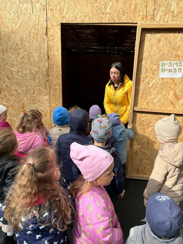 Діти разом із виховательками уважно спостерігали за зведенням у дворі «Бейт Циндлихт» великої сукки та обговорювали всі її особливості, необхідні для правильного виконання заповідей «перебування в шалаші», а також їхній глибокий духовний зміст.
