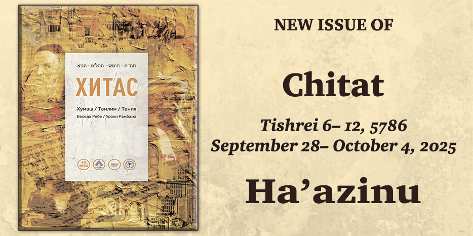 A new Chitat issue for the week of September 28 to October 4 has been posted in the “Chitat” section of our website. “Chitat” in PDF format for direct viewing or downloading Ha’azinu Please note!Our site only hosts the files sent to it, and prepares issues of “Chitat” as its own project – STL (“Shiurey … New Chitat Issue on Our Website! Portion “Ha’azinu”