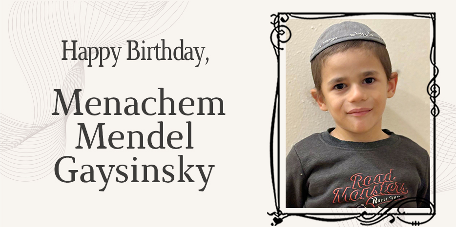 Our website joins in all the congratulations and wishes Menachem Mendel Gaysinsky to always bring joy and happiness to his parents, and, as is fitting, to reach Torah, the Chuppah, and Good Deeds.