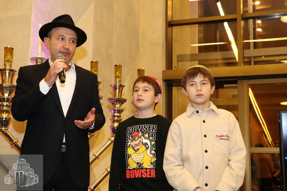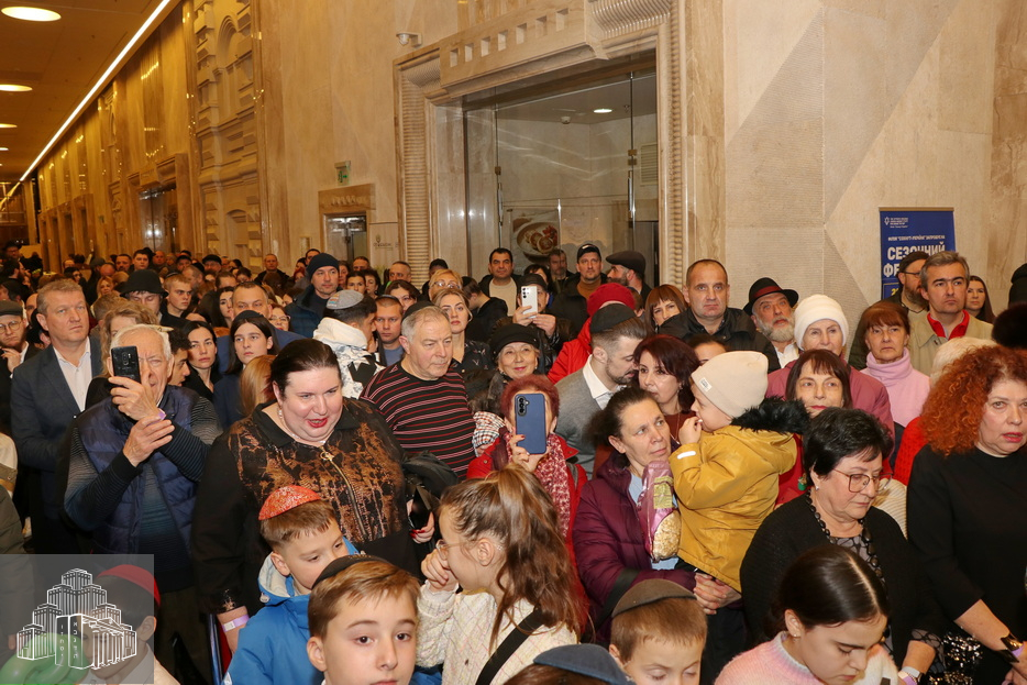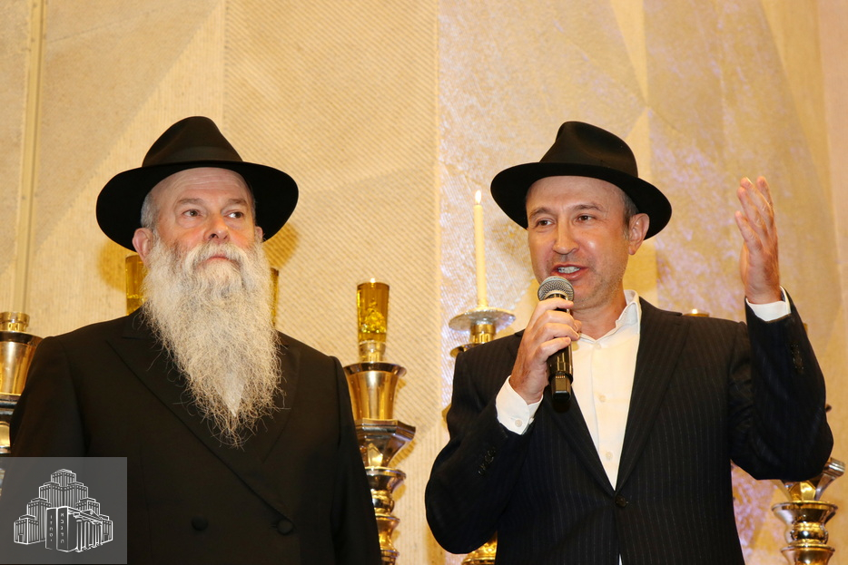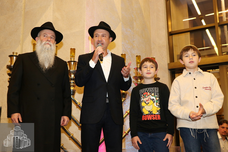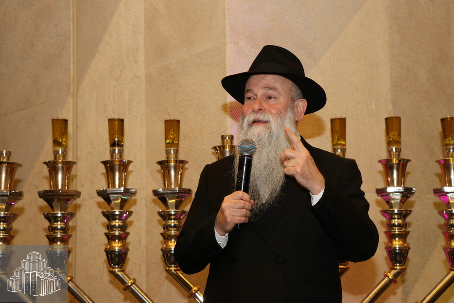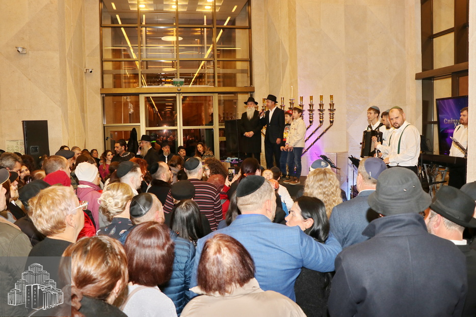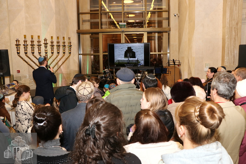 The host of the main Hanukkah lighting ceremony, Reb Shlomo Tereshkevich, congratulated everyone present on the holiday and invited them to watch a video of the Head of our generation, the Seventh Lubavitcher Rebbe Menachem-Mendel Schneerson.