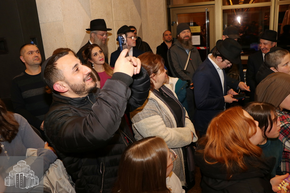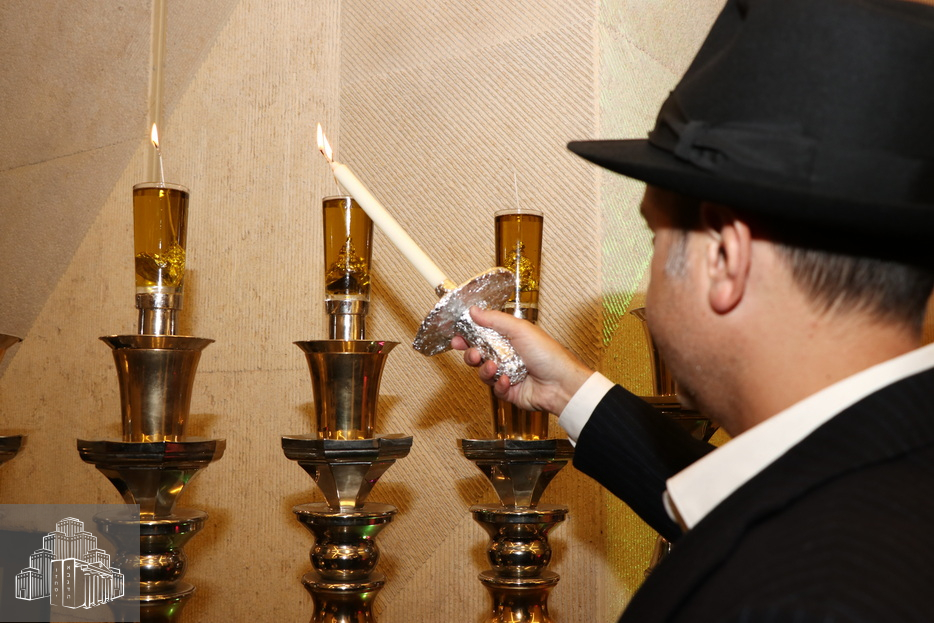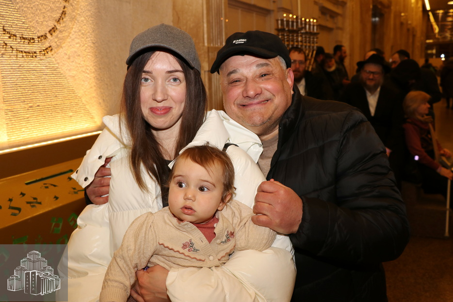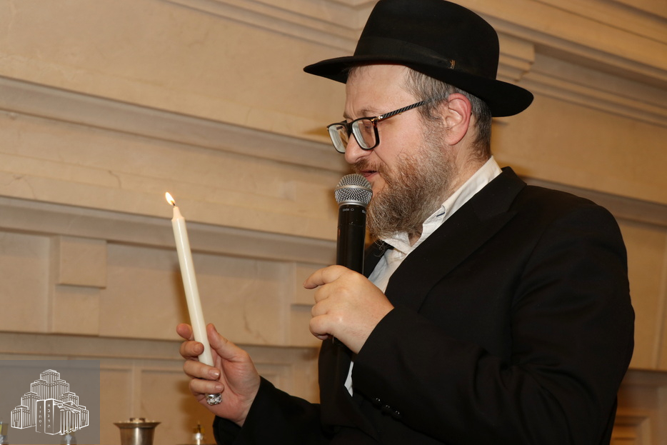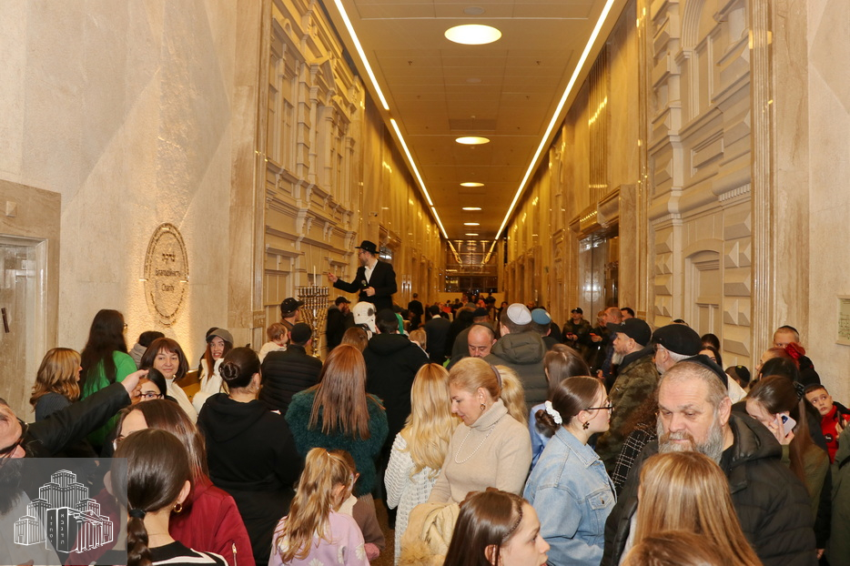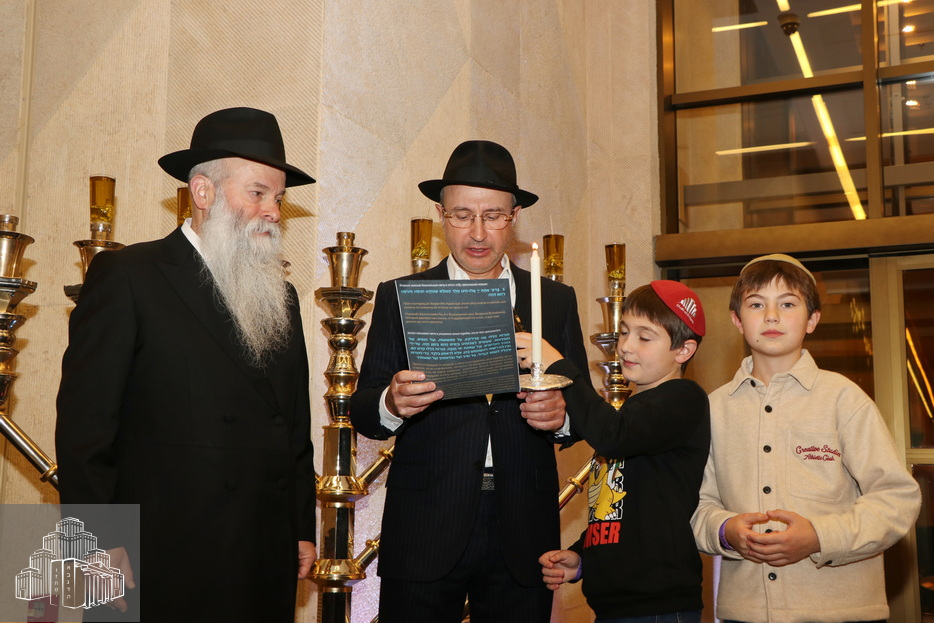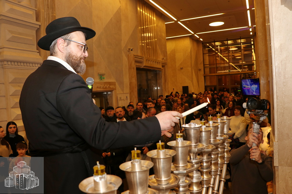 The host of the main Hanukkah lighting ceremony, Reb Shlomo Tereshkevich, congratulated everyone present on the holiday and invited them to watch a video of the Head of our generation, the Seventh Lubavitcher Rebbe Menachem-Mendel Schneerson.