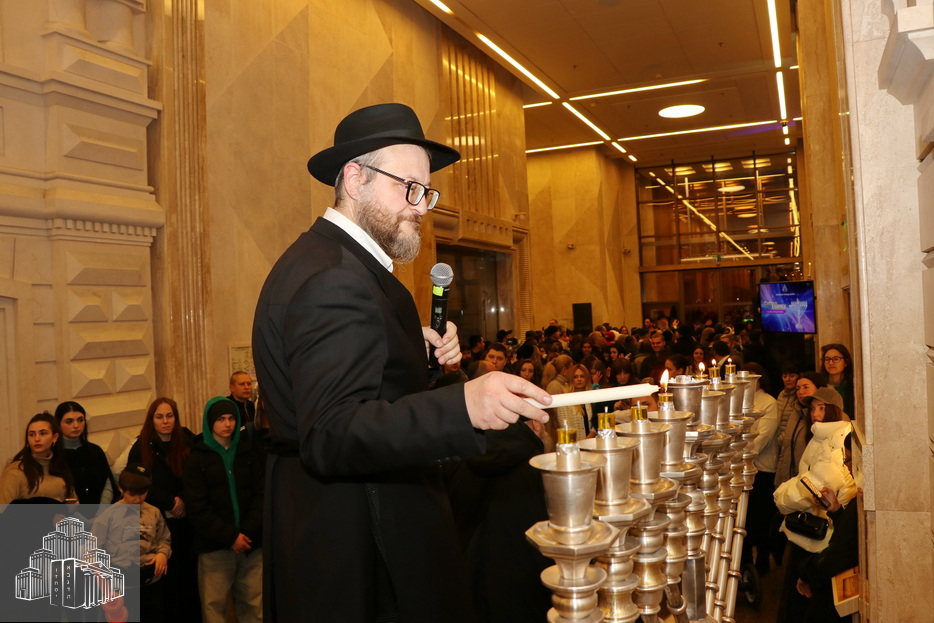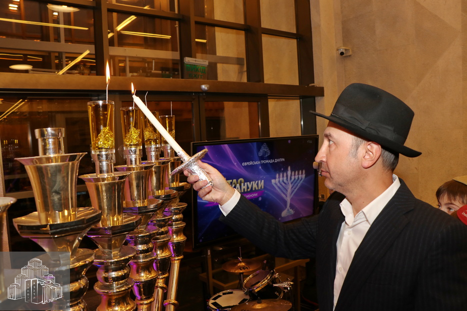 The main event of the seventh evening of Hanukkah in Dnipro was the lighting of candles on the city’s main Hanukkah, installed in the world’s largest Jewish center, “Menorah”.
