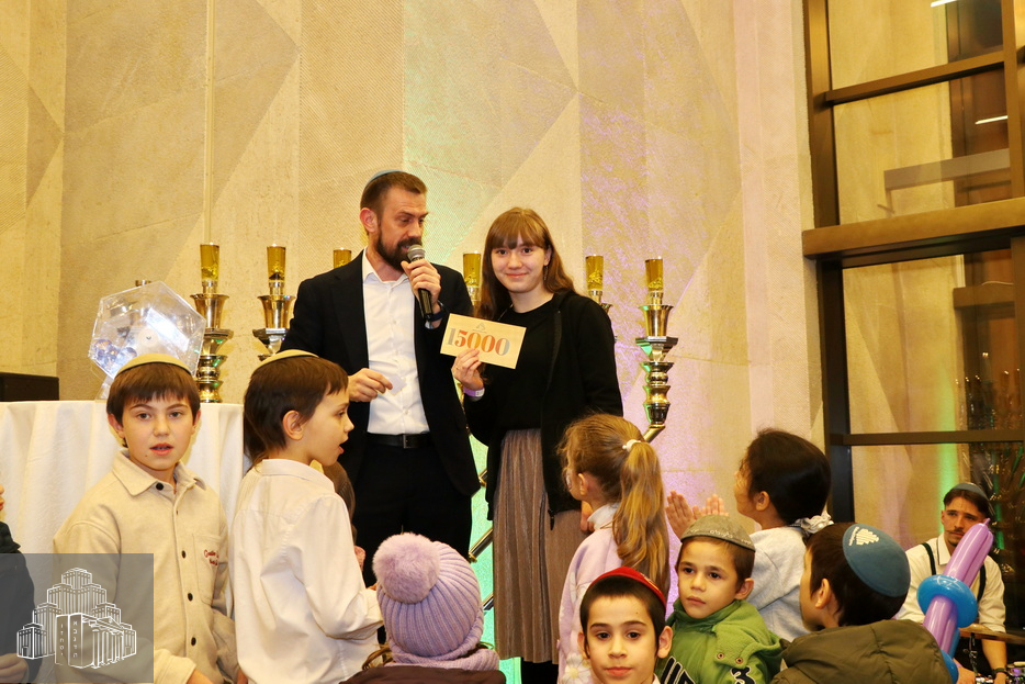 The festive mood for all those present was created by the performance of a klezmer band, which performed popular Hanukkah and Jewish melodies. Many special activities were organized for children – face painting, various games, master classes and much more. Everyone who came to the holiday was able to taste Hanukkah treats and take part in a lottery with valuable prizes, among which, in addition to the traditional large sums of money, there were also special kosher food gifts from the Prasolov and Laktionov families.