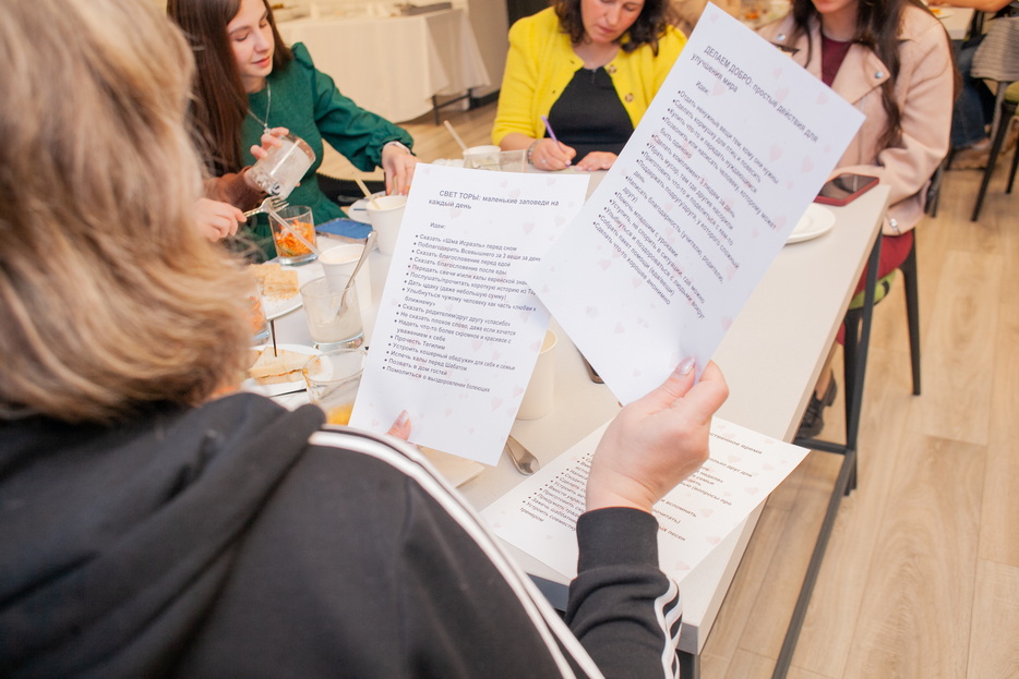 The theme of the gathering was the month of Iyar, which in Jewish tradition is associated with a special time for strengthening health, caring for one’s inner state, and harmoniously combining the physical and the spiritual. Therefore, the evening’s program was dedicated to caring for body and soul through practical activities, shared participation, and meaningful conversation.