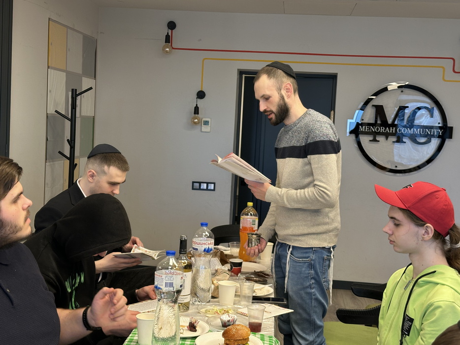 The ceremony was held in the informal education space on the eighth floor of the world’s largest Jewish center, “Menorah,” and served as a continuation of the wedding celebrations, during which the seven blessings are recited for the newlyweds throughout the week following the wedding. The event was attended by students of the program, who together with the young family shared the joy of this important milestone in their lives.