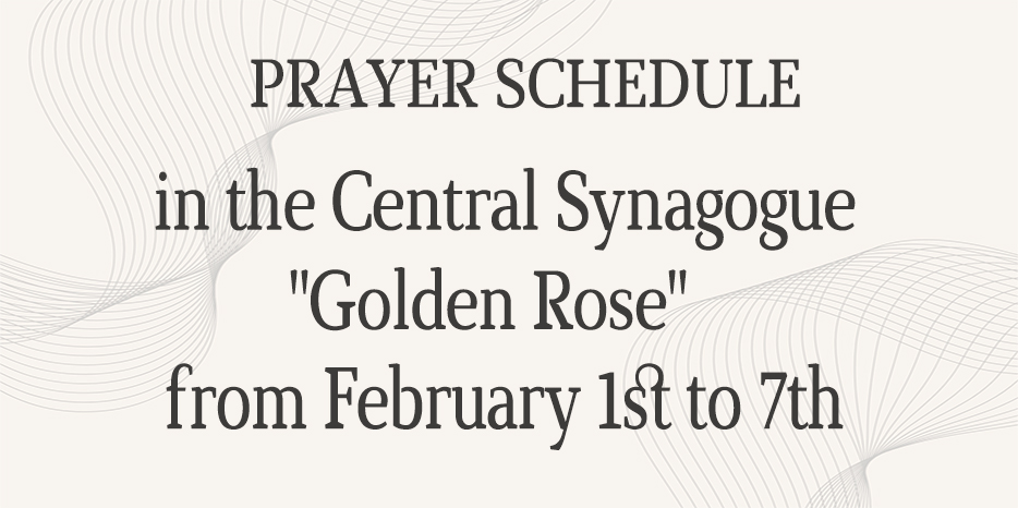 The Central Synagogue “Golden Rose” informs about the prayer service times for the period of February 1st to 7th, which will be held in the main sanctuary. Synagogue address: Sholom-Aleichem Street, 4.