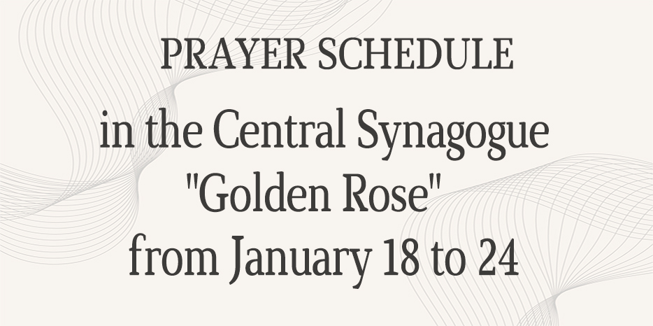 The Central Synagogue “Golden Rose” announces prayer times for the period of January 18th to 24th, which will be held in the main sanctuary. Synagogue address: 4 Sholom-Aleichem Street.