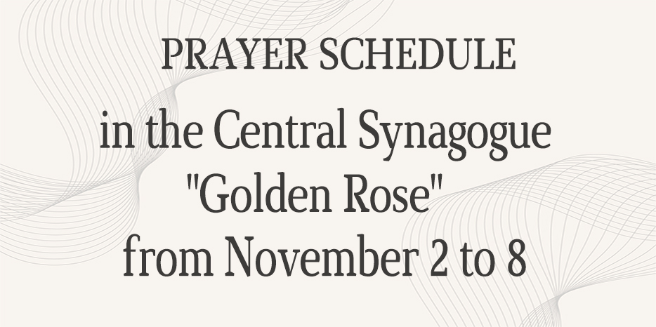 The Central Synagogue “The Golden Rose” announces the prayer times for the period from November 2 to November 8, which will be held in the main prayer hall. Synagogue address: 4 Sholom-Aleichem Street.