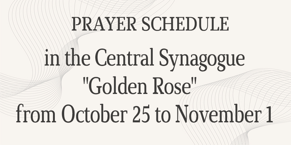 The Central Synagogue “Golden Rose” announces the prayer start times for the period from October 26 to November 1, which will be held in the main prayer hall. The synagogue’s address is 4 Sholom-Aleichem Street.