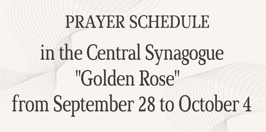 The Central Synagogue “Golden Rose” informs about the prayer times for the period from September 28 to October 4, which will be held in the main prayer hall. Synagogue address: 4 Sholom-Aleichem Street.