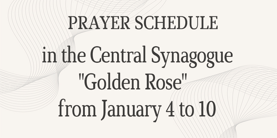 The Central Synagogue “The Golden Rose” informs about the prayer start times for the period from January 4th to 10th, which will be held in the main prayer hall. Synagogue address: Sholom-Aleichem Street, 4.