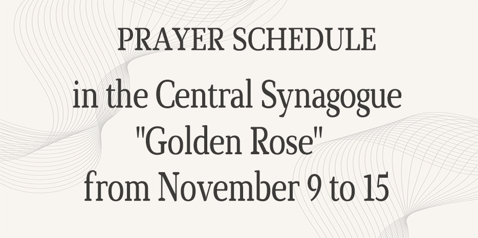 The Central Synagogue “The Golden Rose” announces the prayer times for the period from November 9 to November 15, which will be held in the main prayer hall. Synagogue address: 4 Sholom-Aleichem Street.