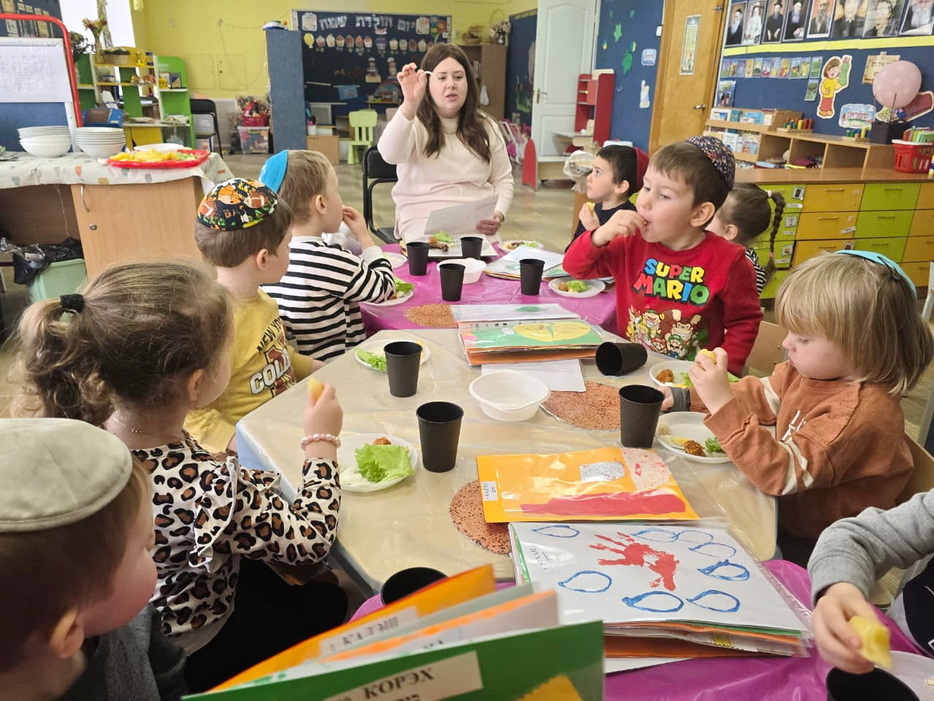 “Preparation for Pesach in our kindergarten involves great participation from the children,” noted kindergarten educator Naomi Chaya Yavorska. “We strive for each child not only to hear about the traditions but also to prepare to perform them in practice, to understand the sequence of actions, and to feel their connection to the life of our united and cohesive Dnipro Jewish Community under the leadership of Chief Rabbi Shmuel Kaminezki.”