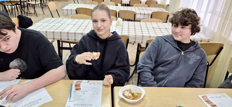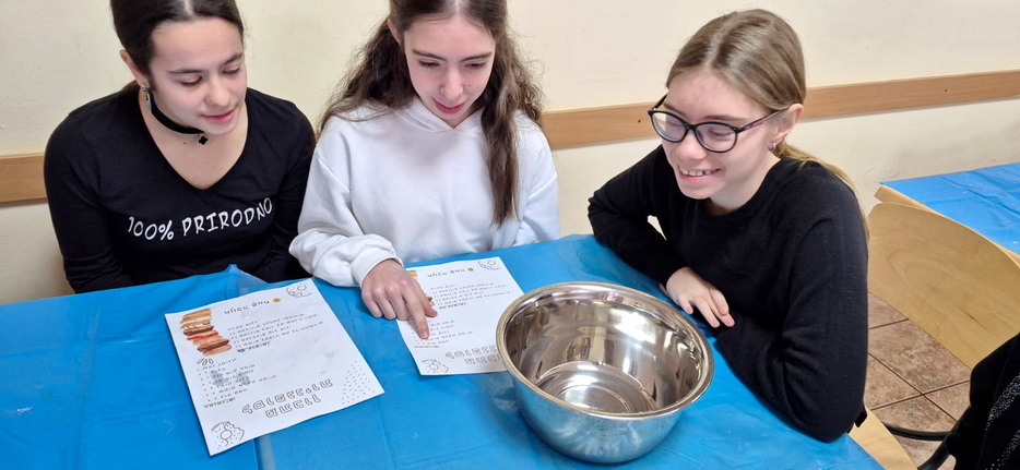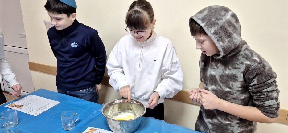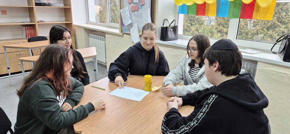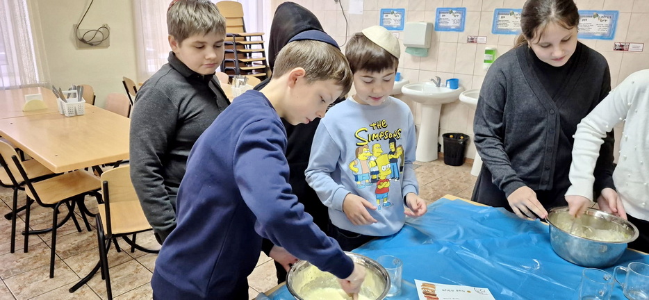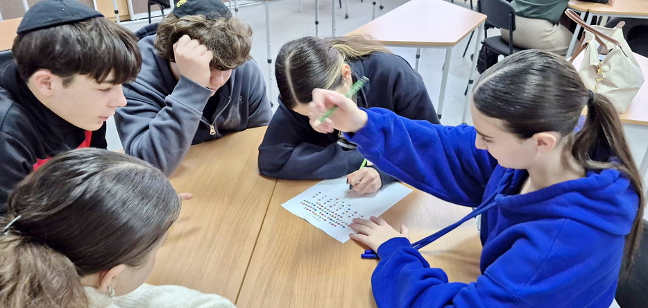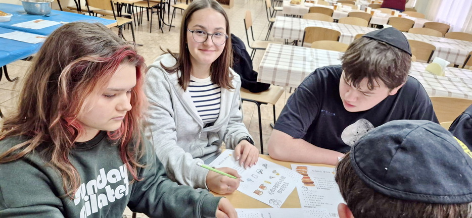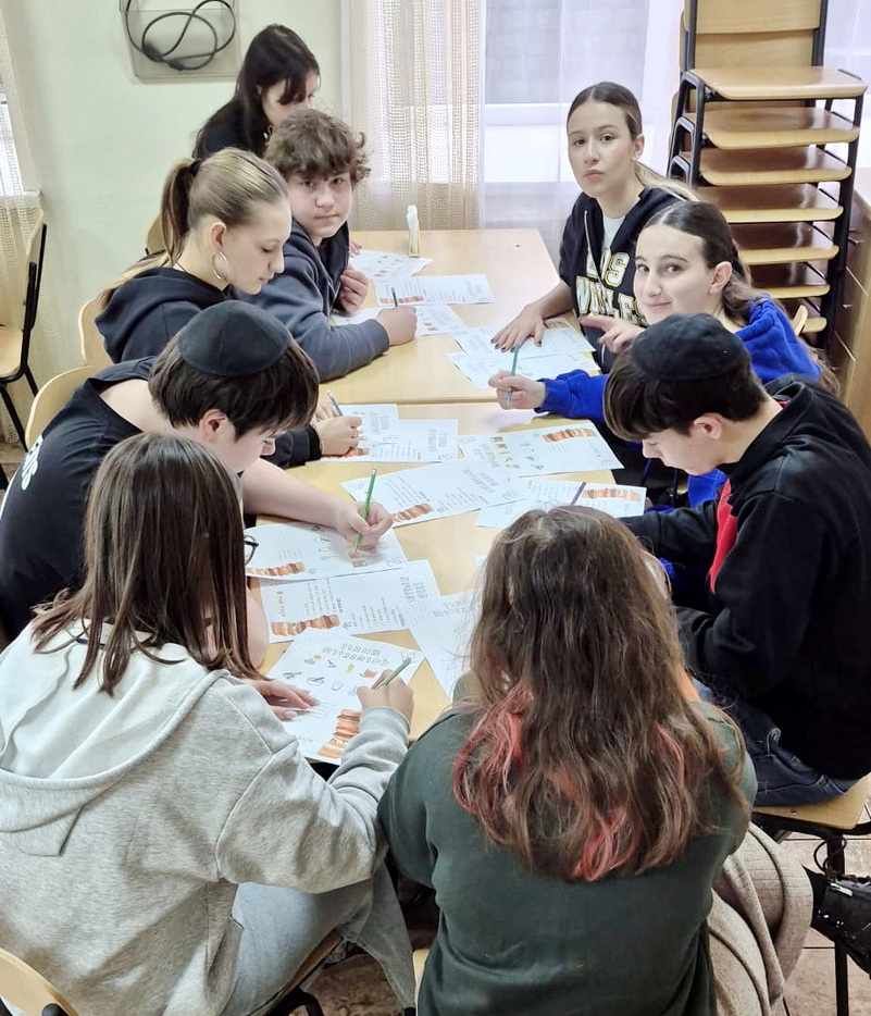 For students in grades five through eight, the lesson revolved around making Hanukkah donuts together, making them with their own hands. For students in grades nine through eleven, a fun Hanukkah game was organized, directly linked to the Hebrew lesson, reinforcing knowledge through movement, competition, and teamwork.