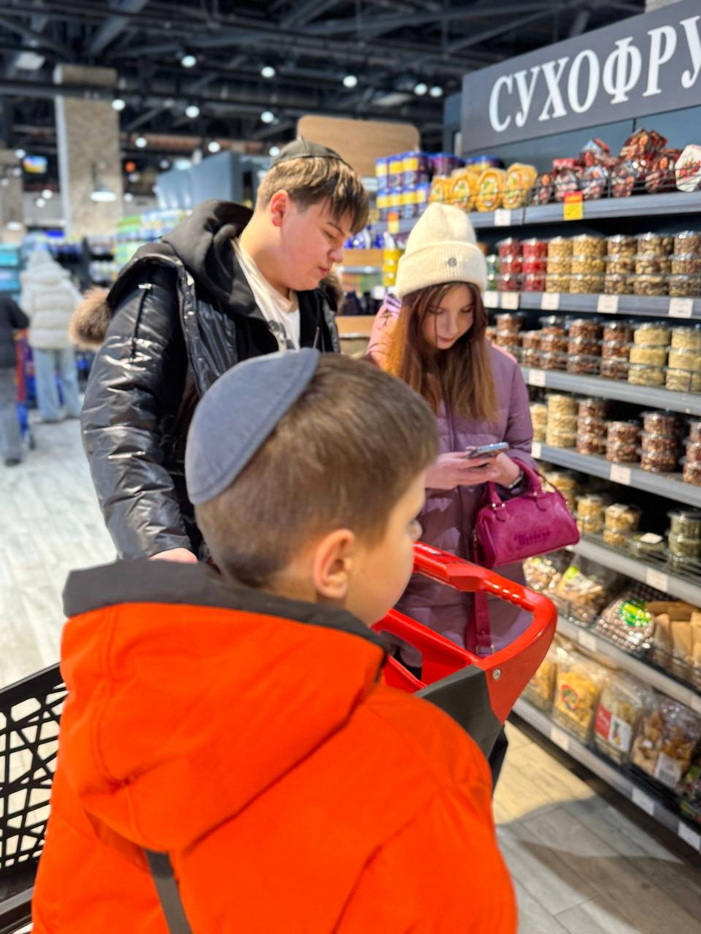 This time, the organizers offered the children an unusual challenge: a limited budget, strict time constraints, and complete freedom of action. The participants imagined themselves as heroes of the movie “Home Alone” and received the task of independently preparing for the festive meal – without adult hints. Dividing into teams, the children went to one of the city’s large supermarkets, where they needed to find the necessary kosher products, stay within the time limit, and spend as little money as possible.