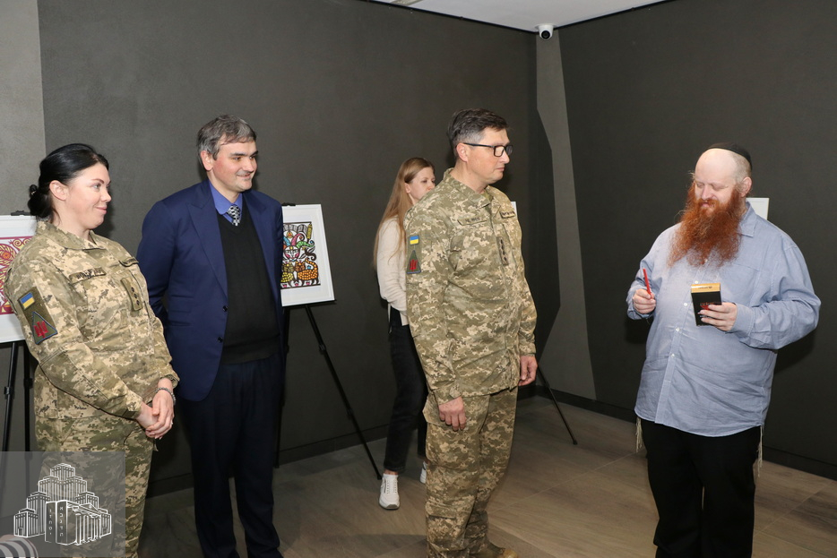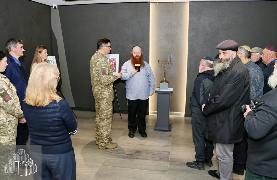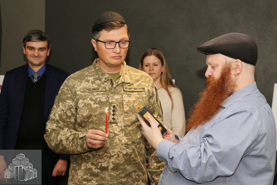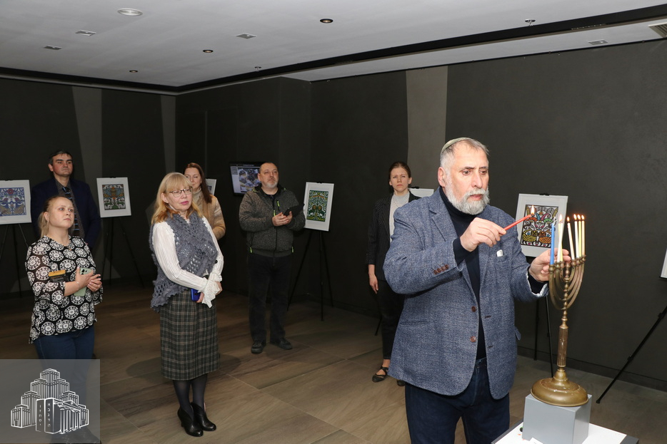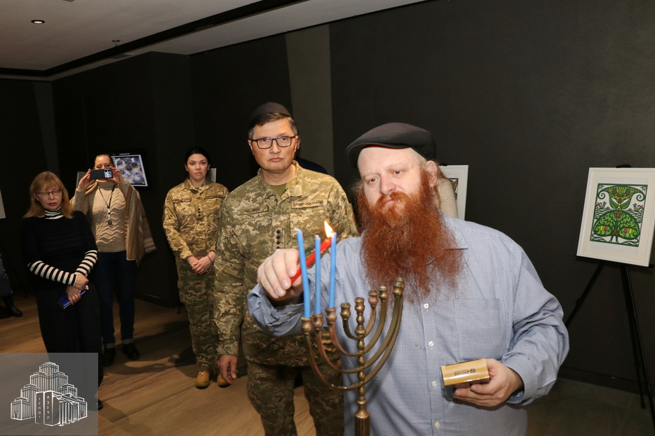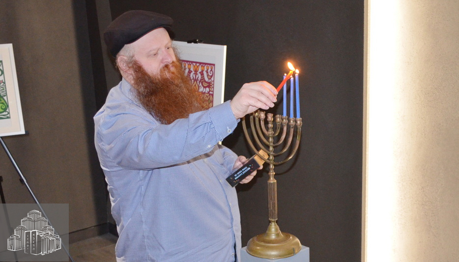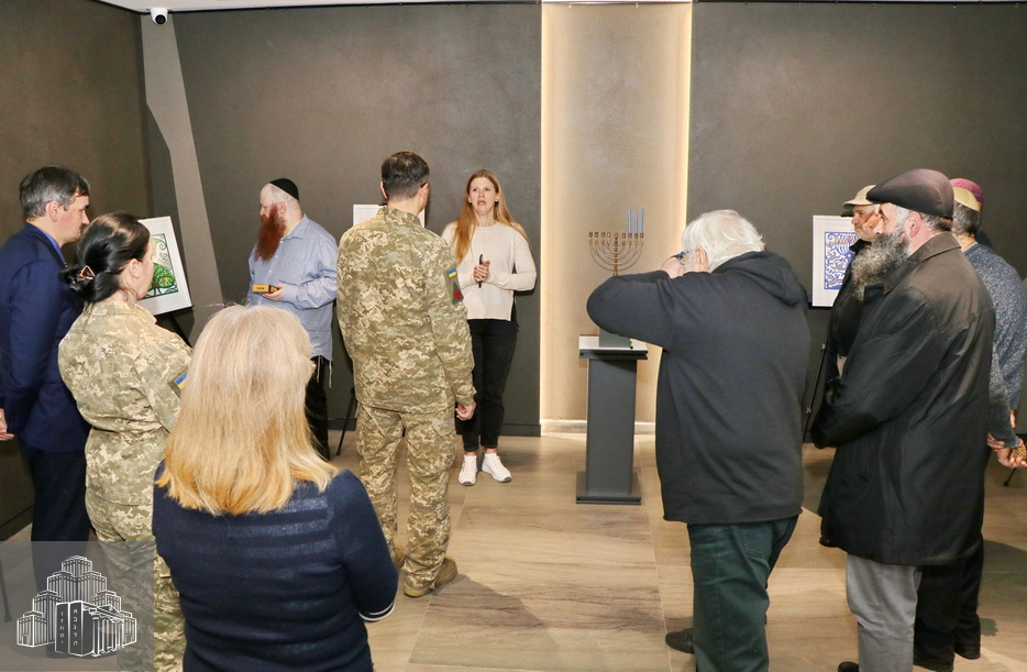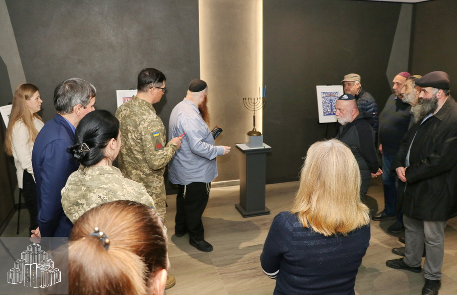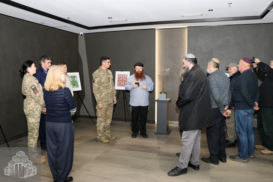 On the first evening of Hanukkah, during the opening of the exhibition “Art and Memory on Paper,” dedicated to the traditional Jewish art of reizele (papercutting) and vibrant Ukrainian-Jewish calendars, the candles were lit by the Deputy Secretary of the Dnipro Rabbinical Court, Rabbi Avraham Yosef Yitzchak Karshenbaum.