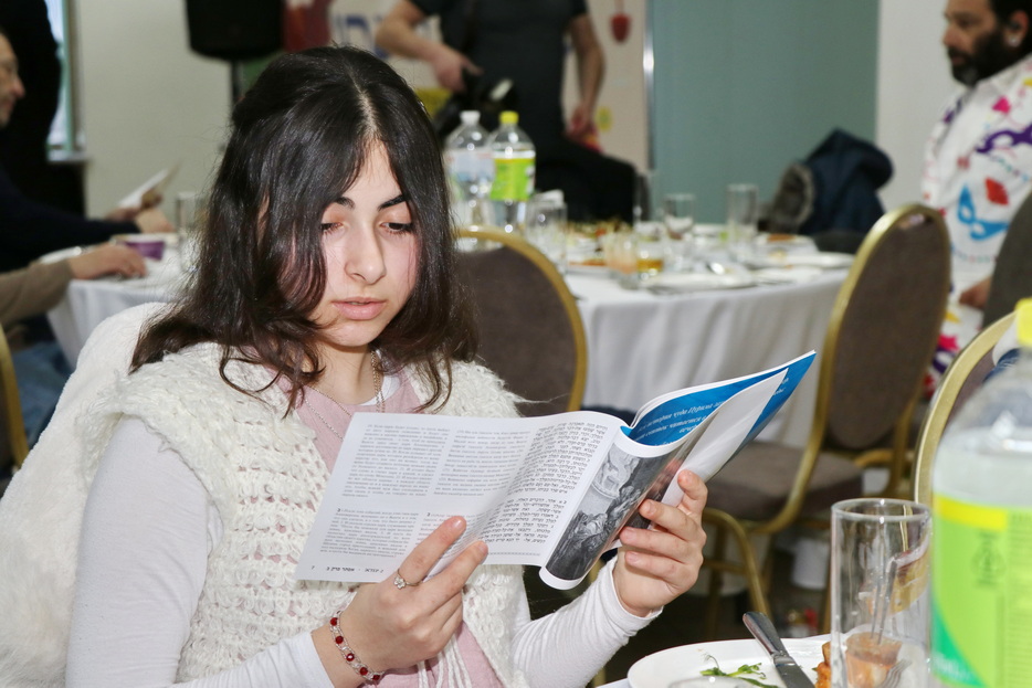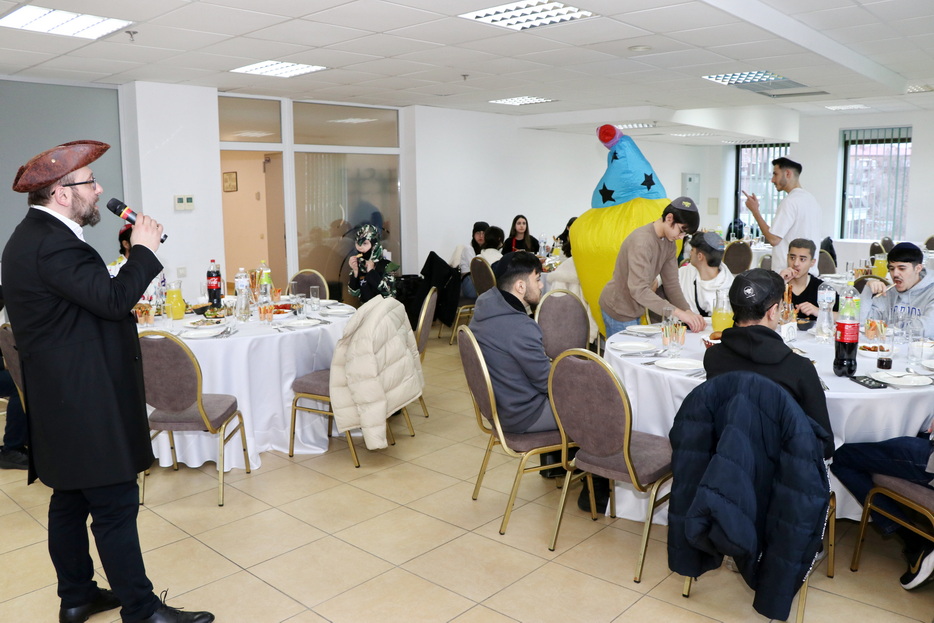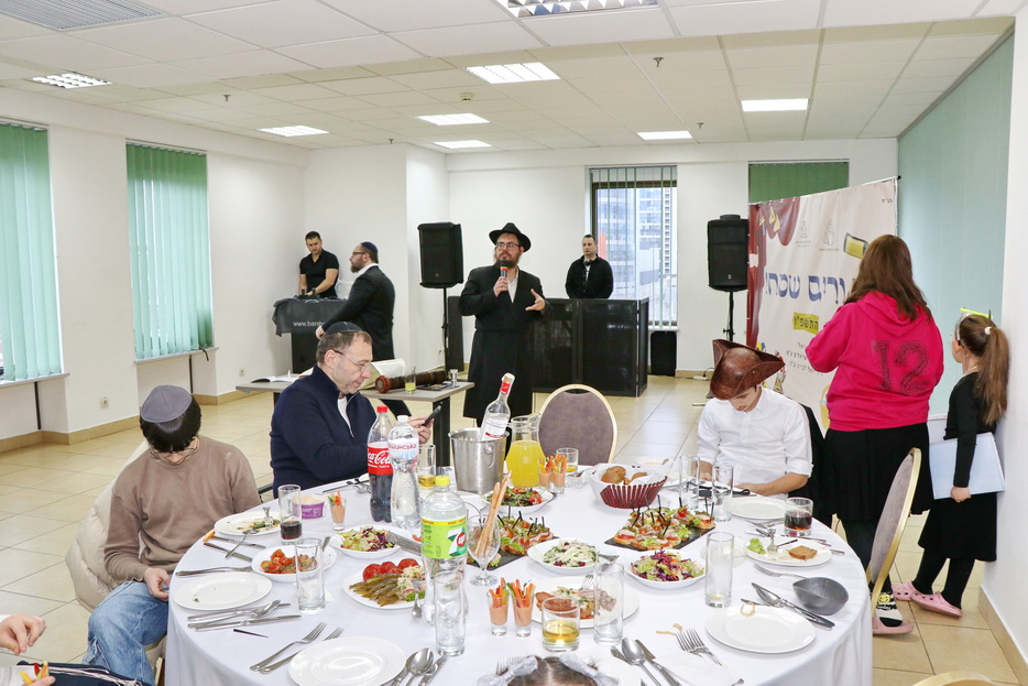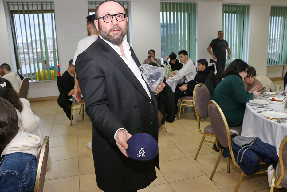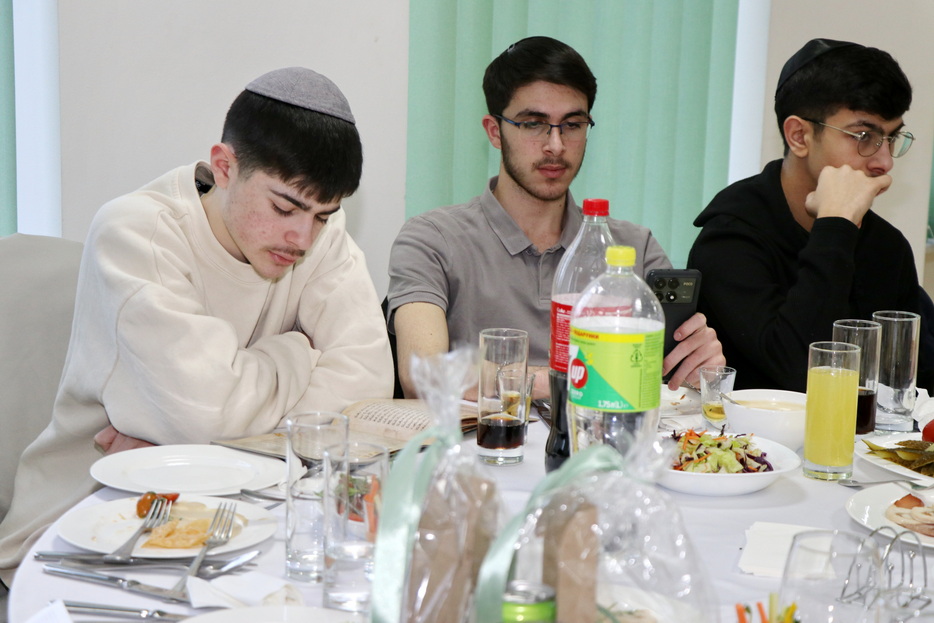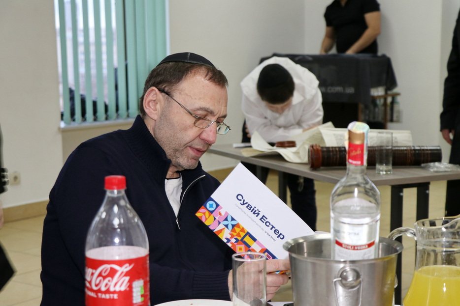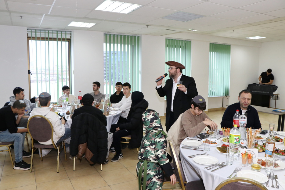 The central event of the evening was the fulfillment of one of the holiday’s primary mitzvos – the reading of the Megillah. The Megillah was read by Rabbi Moshe Neumann, and the blessings before the reading were recited by one of the “Beit Yoel” project students, Ariel Mashiachov. Also in attendance were the rabbinic instructors who teach the project’s students, including Rabbi Menachem Mendel Marinovsky, who came together with his wife and children. The honored guest of the celebration was esteemed Dnipro Jewish Community member Rafael Sapozhnikov, a long-time friend of the project and a supporter of “Beit Yoel’s” activities.