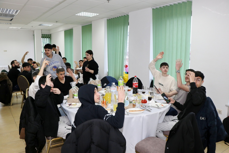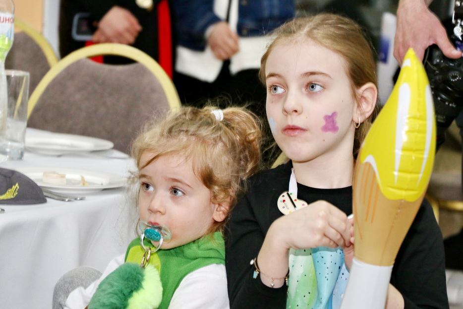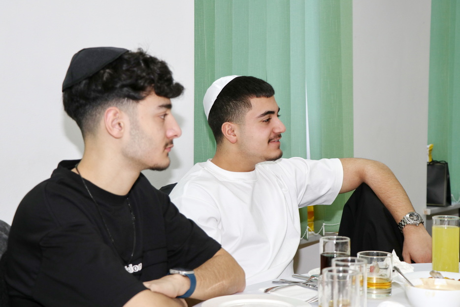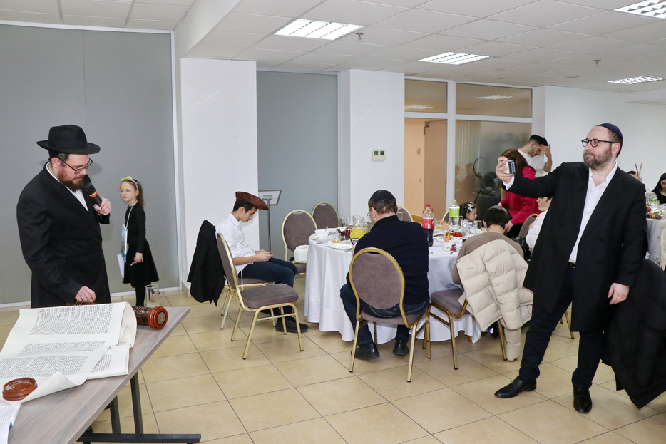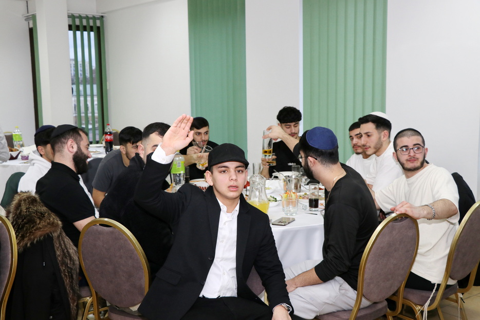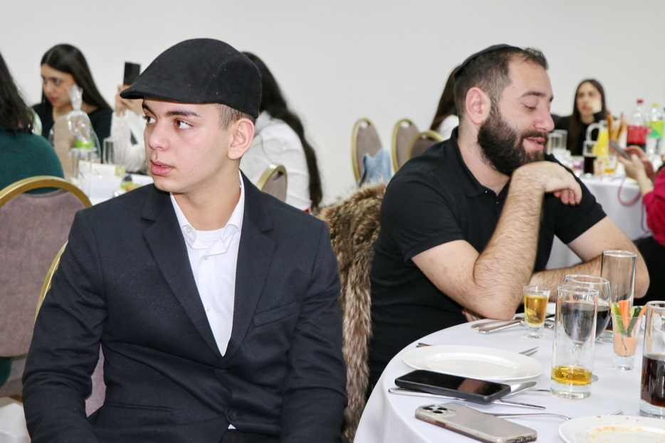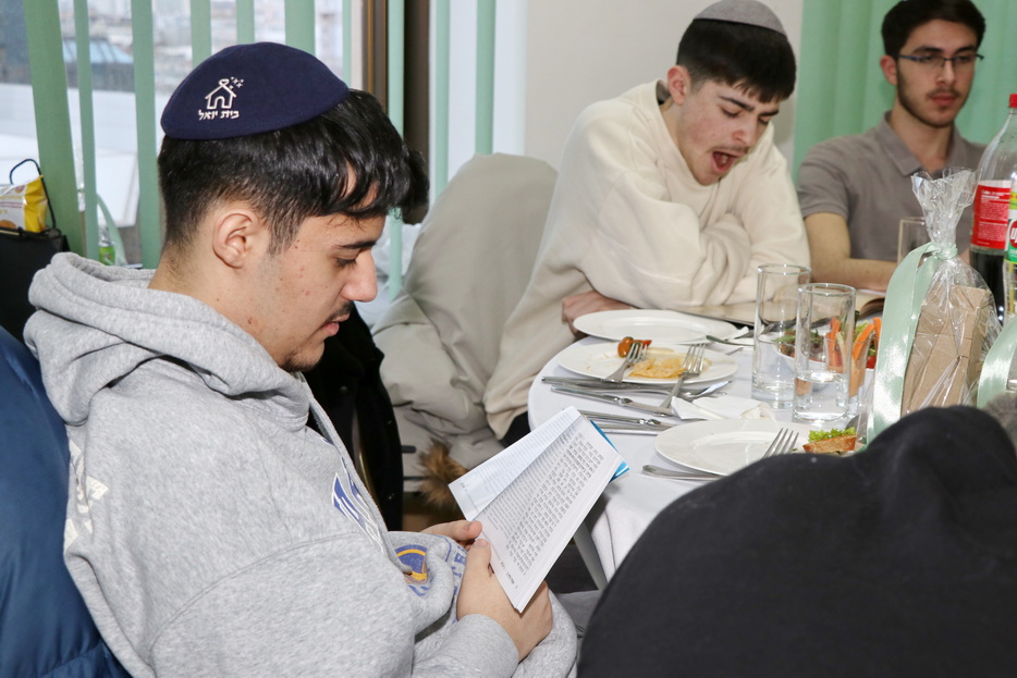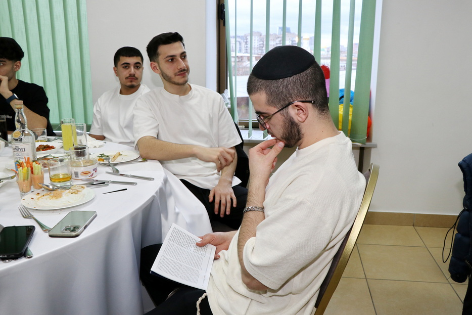 The central event of the evening was the fulfillment of one of the holiday’s primary mitzvos – the reading of the Megillah. The Megillah was read by Rabbi Moshe Neumann, and the blessings before the reading were recited by one of the “Beit Yoel” project students, Ariel Mashiachov. Also in attendance were the rabbinic instructors who teach the project’s students, including Rabbi Menachem Mendel Marinovsky, who came together with his wife and children. The honored guest of the celebration was esteemed Dnipro Jewish Community member Rafael Sapozhnikov, a long-time friend of the project and a supporter of “Beit Yoel’s” activities.