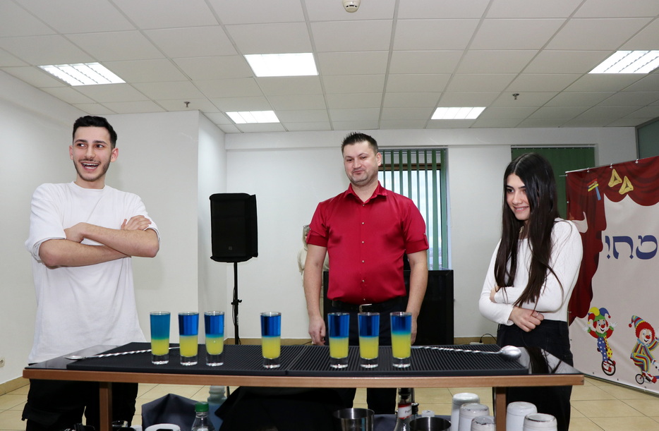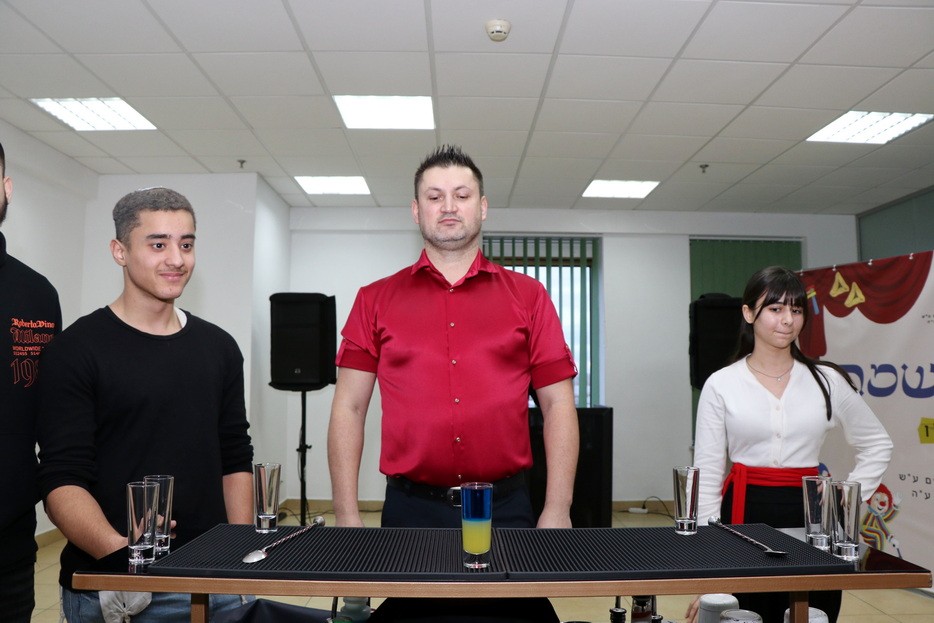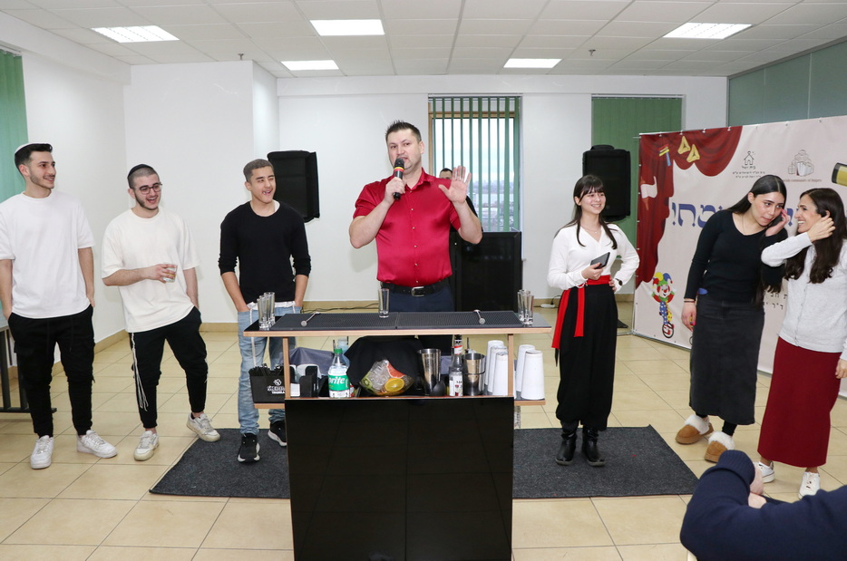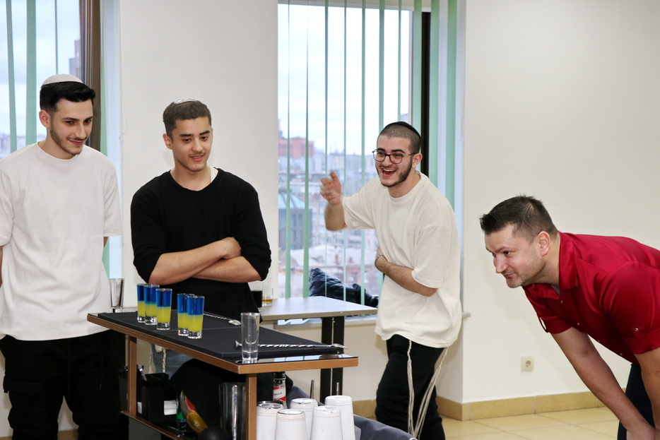 A rich festive program was prepared for the participants. Students enjoyed a performance by a juggler, took part in a fun cocktail-making competition, and the musical atmosphere of the evening was provided by a DJ, ensuring the celebration was filled with joy and authentic Purim merriment. The festive atmosphere was shared with the students by the Rabbi of the Beit Chabad for Israelis, Yaakov Dorfman, and his wife Leah, who accompany and support the project participants.