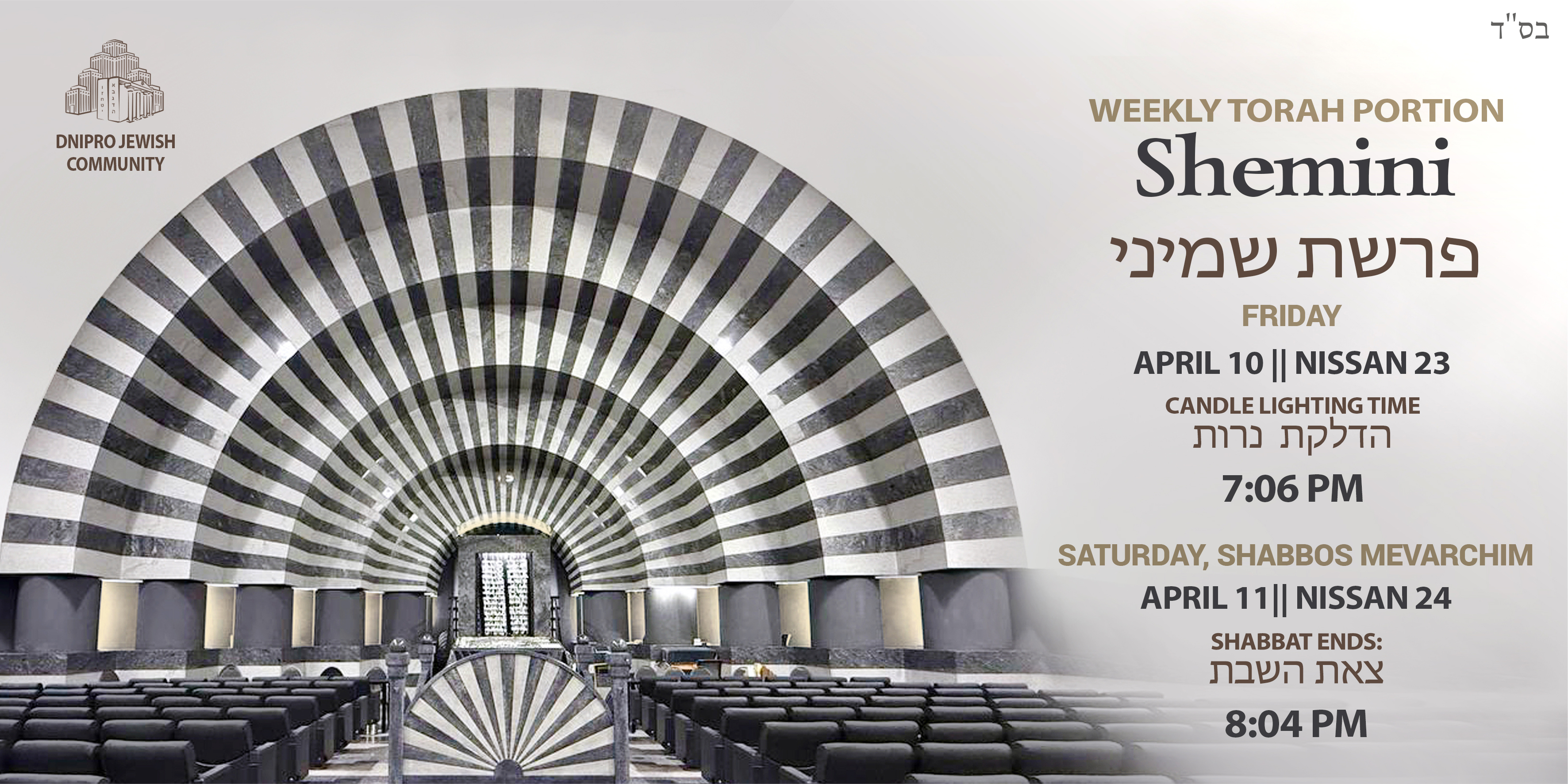 On Friday, April 10, in Dnipro, Shabbos candles are lit at 7:06 PM.