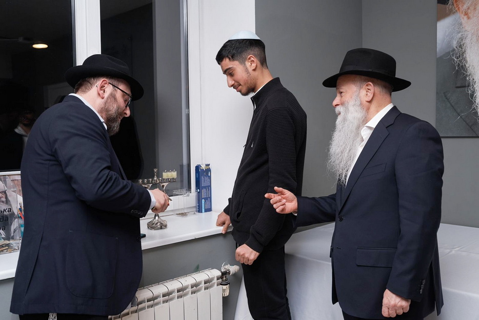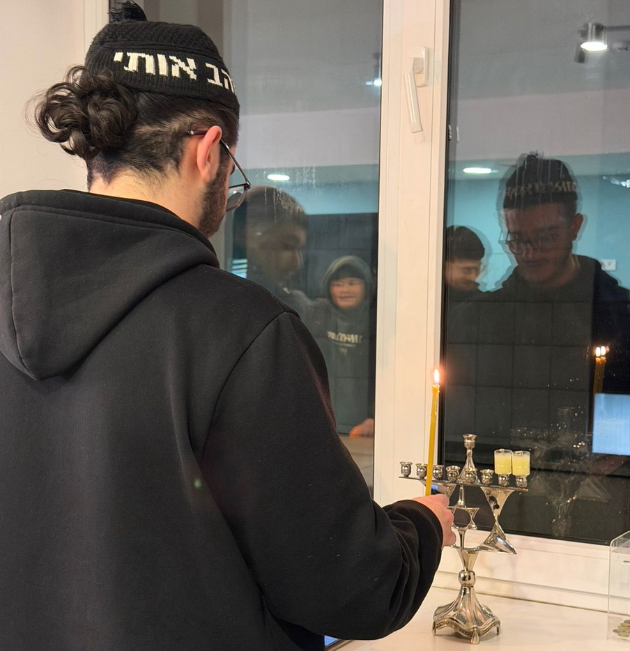 On the first three evenings of the holiday, the candles were lit by participants of the “Beit Yoel” project, students of Dnipro higher education institutions: Yaakov Mashiach, Ariel Mashiachov, and Yair Sianov. Later, the Hanukkiah was lit by the project’s rabbi, Yaakov Dorfman. And on the final, eighth evening of Hanukkah, the honor of lighting the Hanukkiah was given to a special guest of the project, the head of the “Nativ” representative office in Ukraine, advisor to the Embassy of the State of Israel in Ukraine, Mr. Mark (Mordechai) Dovev.