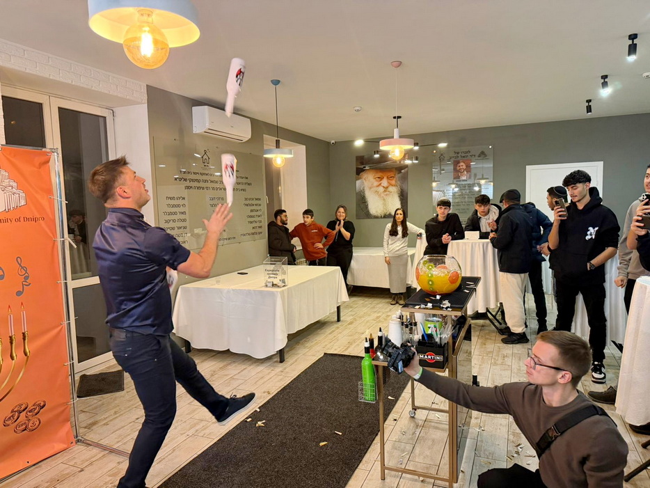 A special party took place on the evening of the third candle and was attended by the Chief Rabbi of Dnipro and the region, Shmuel Kaminezki, who warmly greeted the students, wished them a happy and joyous Hanukkah, and spoke about the lessons of this holiday in our time when it is so important to multiply spiritual light in the world. That evening, a specially invited DJ played for the students, and everyone also had the opportunity to enjoy a show program by skilled bartenders.