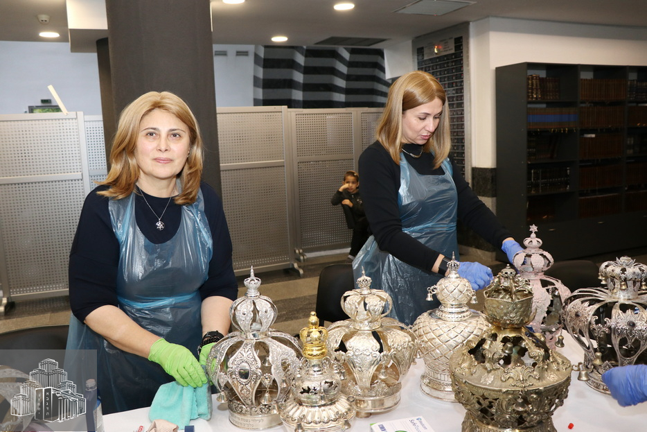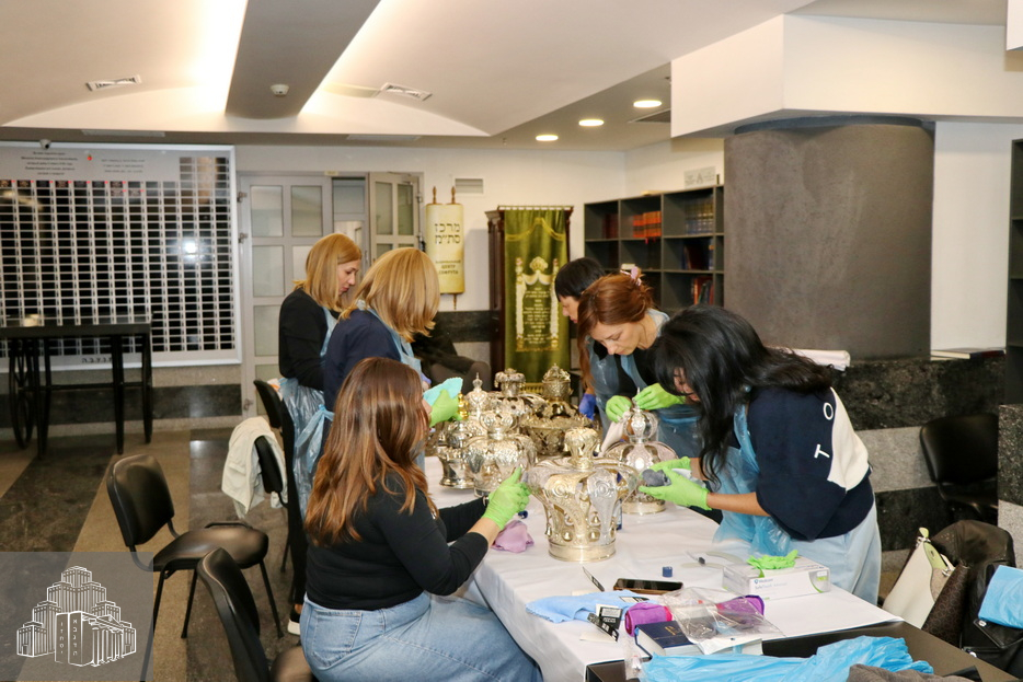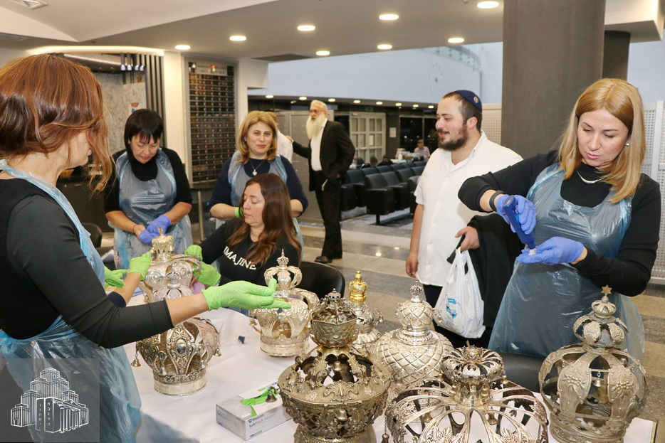 Робота з очищення та відновлення первісної краси Корон Тори, які є в нашій синагозі, була дуже кропіткою, вимагала чимало зусиль, уваги й акуратності. Жінки придбали спеціальні пасти й аксесуари та виконували цю роботу з великим натхненням і любов’ю, щиро радіючи тому блиску й величі, що проявлялися на їхніх очах завдяки їхнім старанням.