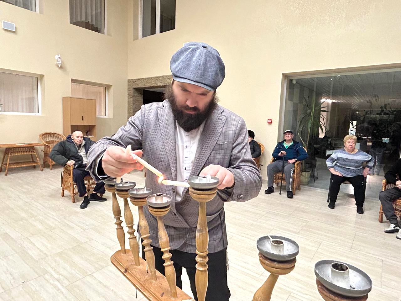 Щовечора урочисте запалювання головної ханукії за присутності мешканців і співробітників «Бейт-Барух» проводить рабин Дому для людей похилого віку Леві Артюшкін. Усі уважно слухають благословення, відповідають «Амен», милуються світлом ханукальних вогнів, а потім влаштовують невелику вечірку з танцями, наповнюючи серця справжньою ханукальною радістю.