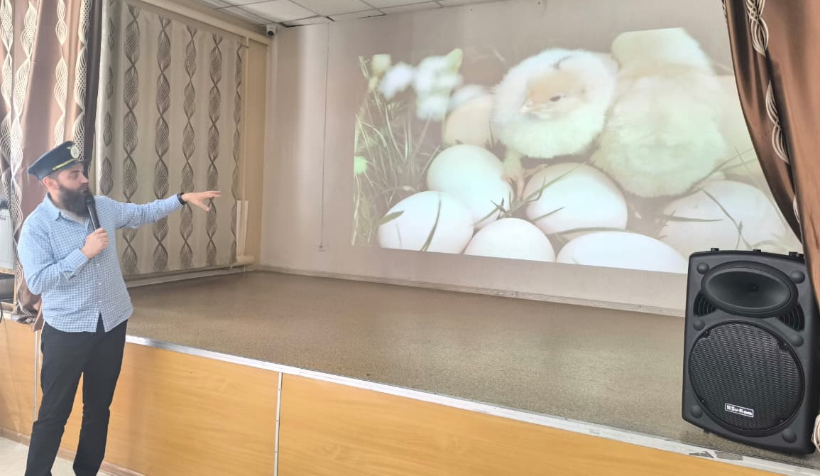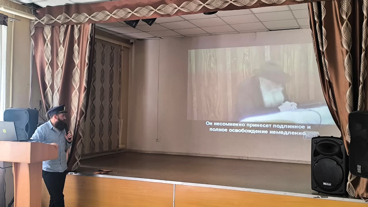 Програма розпочалася з перегляду відео з бесідою Ребе, в якій пролунали ключові слова про те, що «я зробив усе, що міг, далі залежить від вас», що задало тон усій подальшій роботі. Продовженням став виступ рабина Леві Енгельсмана, який розповів історію, пов’язану з цим днем, поглибивши розуміння його значення, після чого учням було запропоновано наочну алегорію, що розкриває внутрішній зміст цієї дати. Хлопцям пояснили образ яйця, вже висидженого й підготовленого до появи пташеняти, яке, однак, має саме проклюнути шкаралупу, щоб народитися, адже той, хто не здійснює цього зусилля, залишається всередині й не реалізує закладений у ньому потенціал, і ця ідея була безпосередньо співвіднесена з тим, чого вимагає від людини 28 Нісана – вийти за межі власної «шкаралупи», подолати кліпу та перейти до реальної дії.