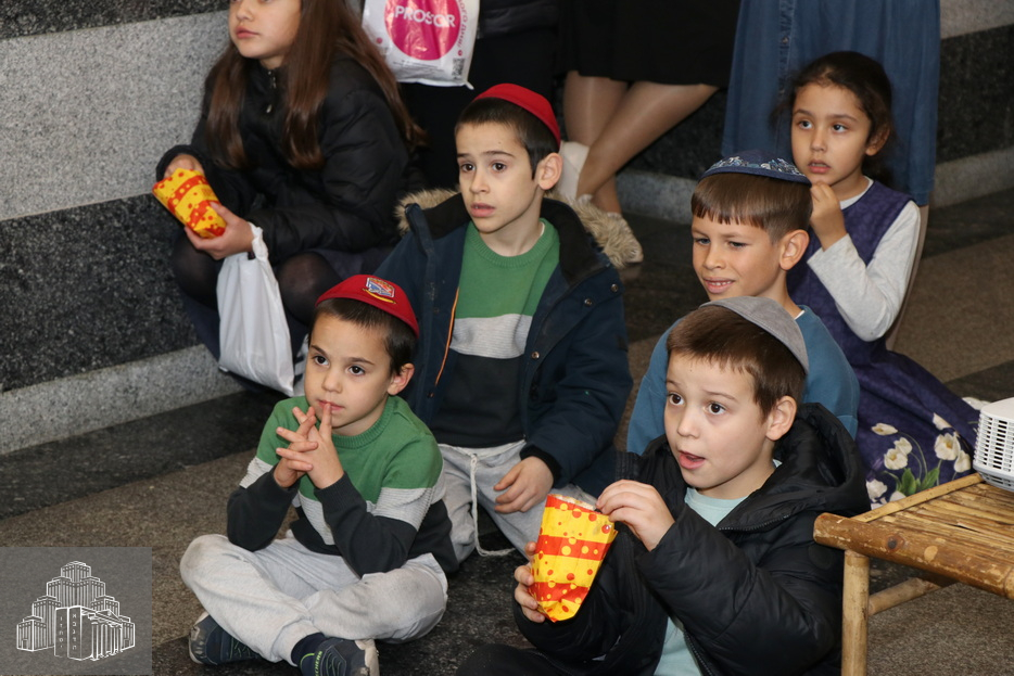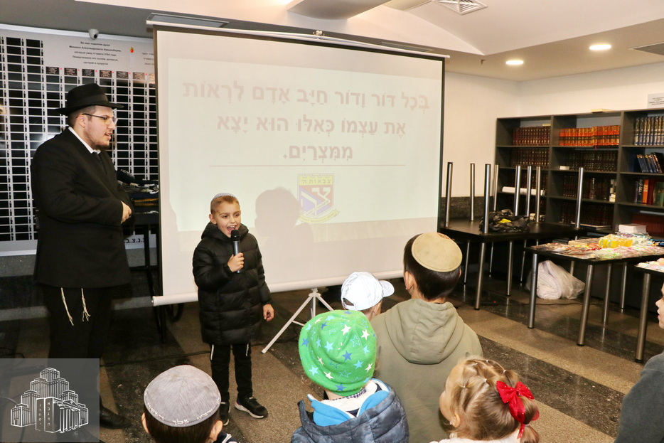За традицією діти промовили дванадцять віршів із Тори – «12 псукім», які Любавицький Ребе закликав знати всіх єврейських дітей світу. Потім діти подивилися відеозвернення Ребе та добрий анімаційний фільм, присвячений святу Суккот.