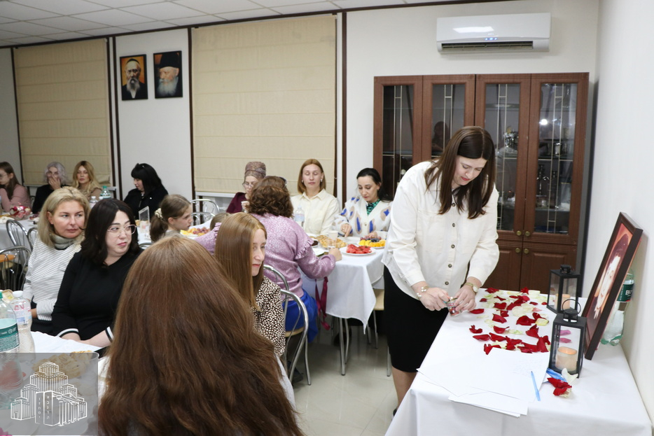 На початку зустрічі ведуча фарбренгену Даніела Лістенгурт тепло привітала всіх присутніх і нагадала про важливість написати ПАН та дати цдоку, адже під час фарбренгену Лея Лазарєва передасть інформацію активістці єврейського жіночого руху в Дніпрі Сарі Джерук, яка знаходиться біля могили ребецн Хани у Нью-Йорку та прочитає всі імена та молитиметься за всіх учасниць, за всю нашу громаду і нашу країну.