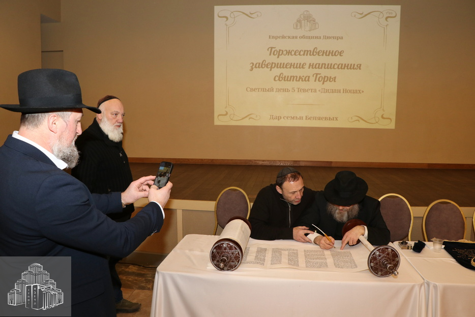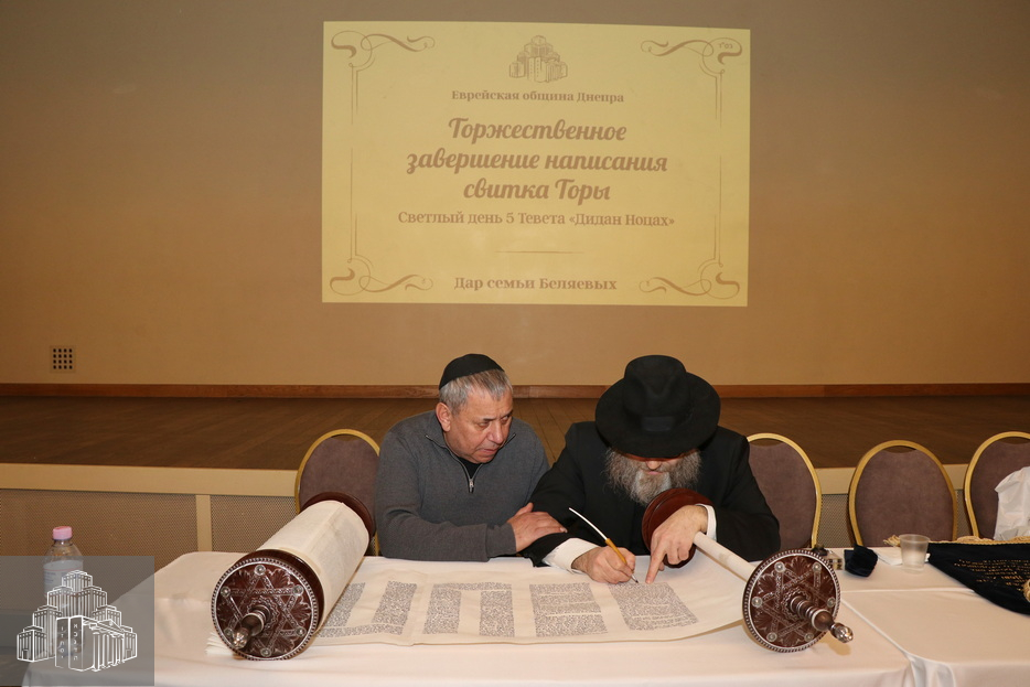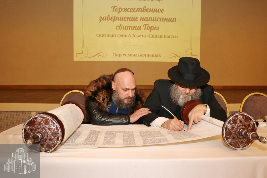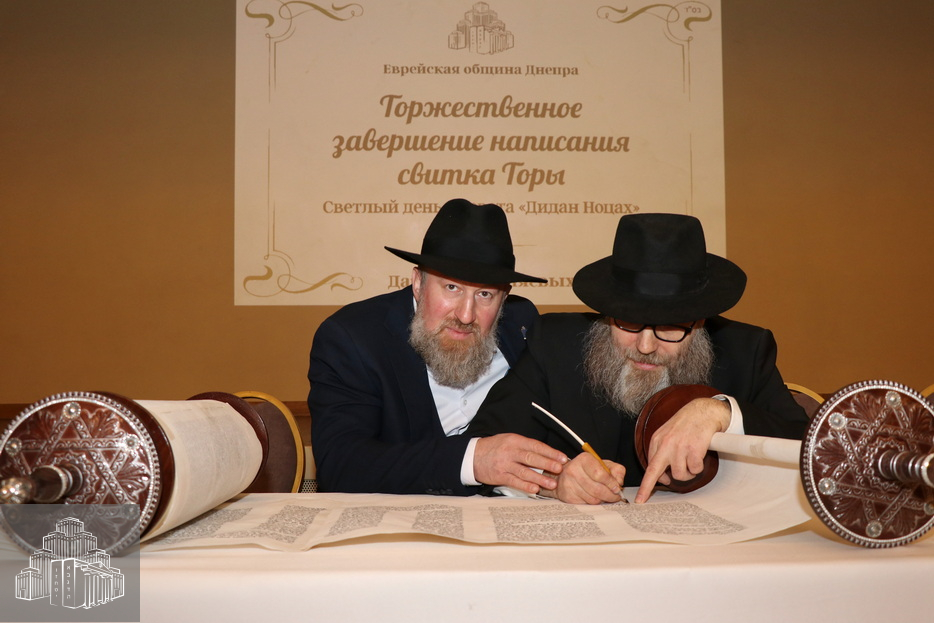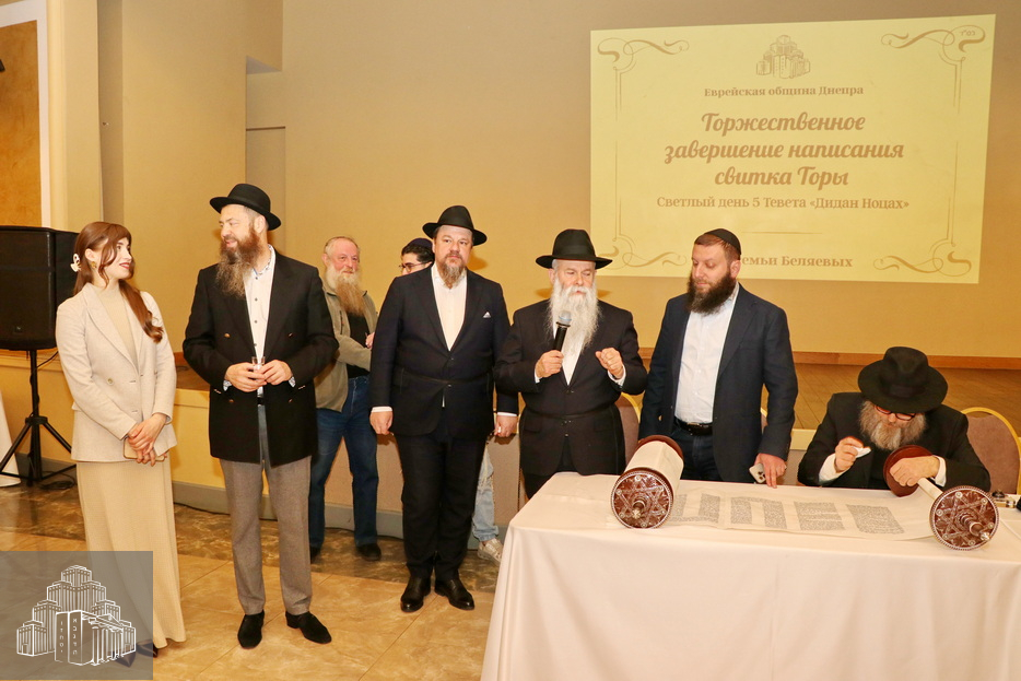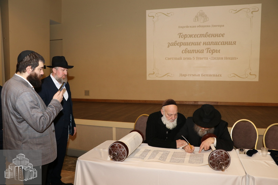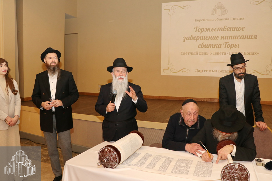 Право вписати літери на завершення Сувою Тори отримали багато членів Єврейської громади Дніпра, адже це не лише велика честь, а й особлива заслуга, важливість якої неодноразово підкреслював Глава нашого покоління Сьомий Любавицький Ребе Менахем-Мендел Шнеєрсон. Честь написати три найпочесніші, завершальні літери під оплески присутніх отримали рабин Шмуель Камінецький, рабин Ієхіель Левитанський та дарувальник цього Сувою Тори, шанований член Єврейської громади Дніпра Йосеф Давид Бєляєв.