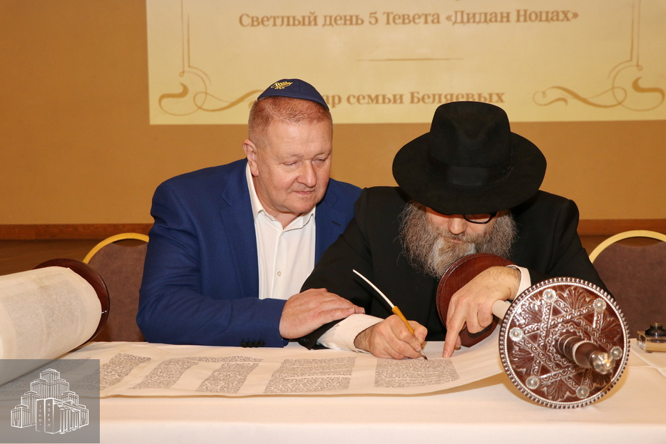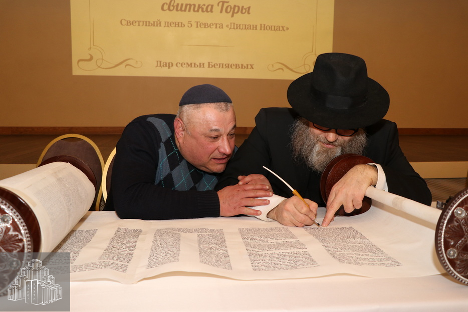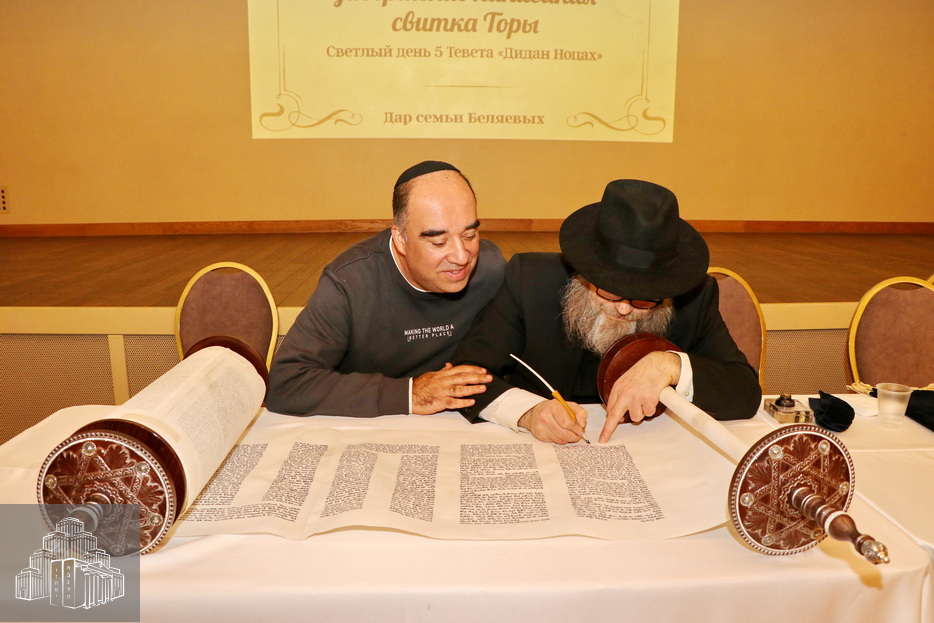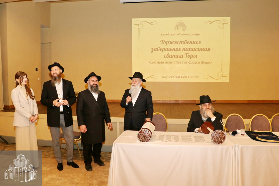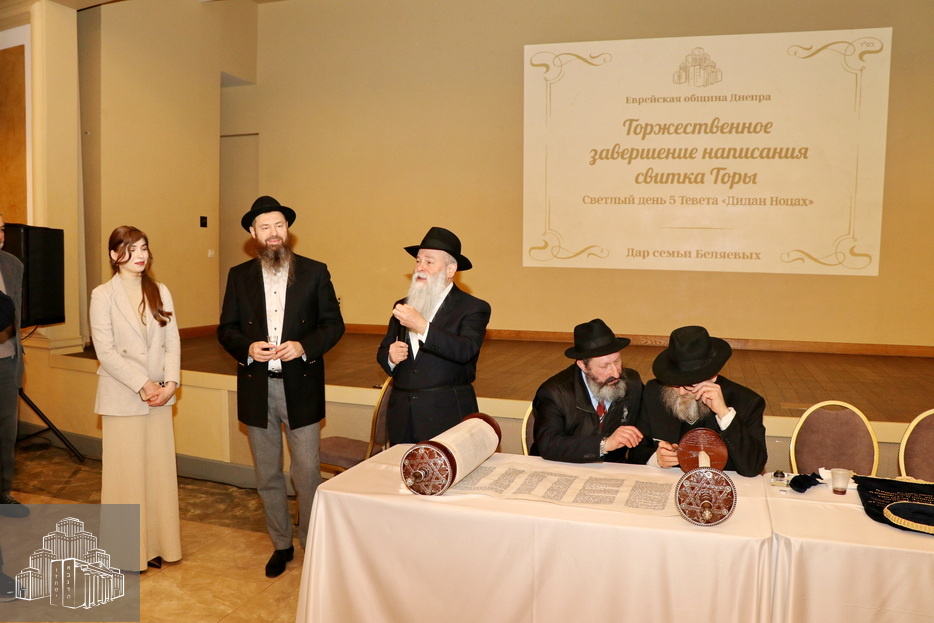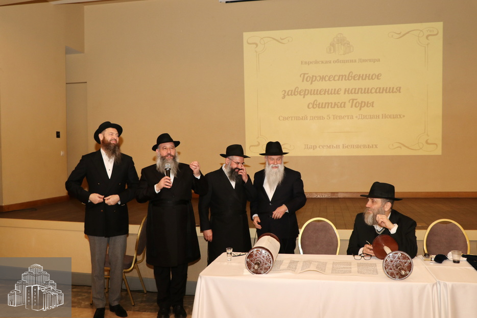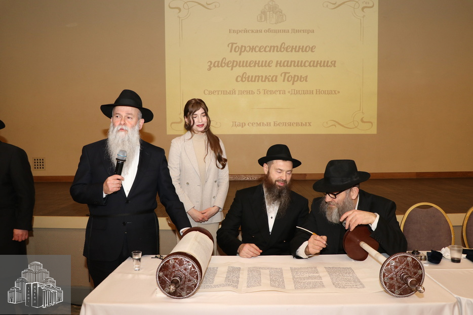 Право вписати літери на завершення Сувою Тори отримали багато членів Єврейської громади Дніпра, адже це не лише велика честь, а й особлива заслуга, важливість якої неодноразово підкреслював Глава нашого покоління Сьомий Любавицький Ребе Менахем-Мендел Шнеєрсон. Честь написати три найпочесніші, завершальні літери під оплески присутніх отримали рабин Шмуель Камінецький, рабин Ієхіель Левитанський та дарувальник цього Сувою Тори, шанований член Єврейської громади Дніпра Йосеф Давид Бєляєв.