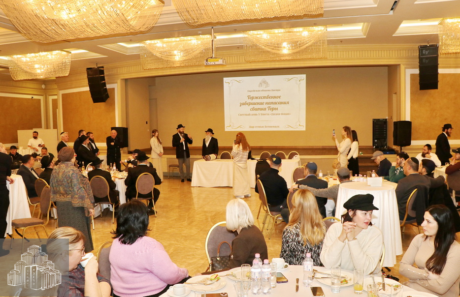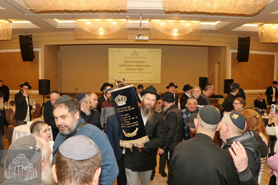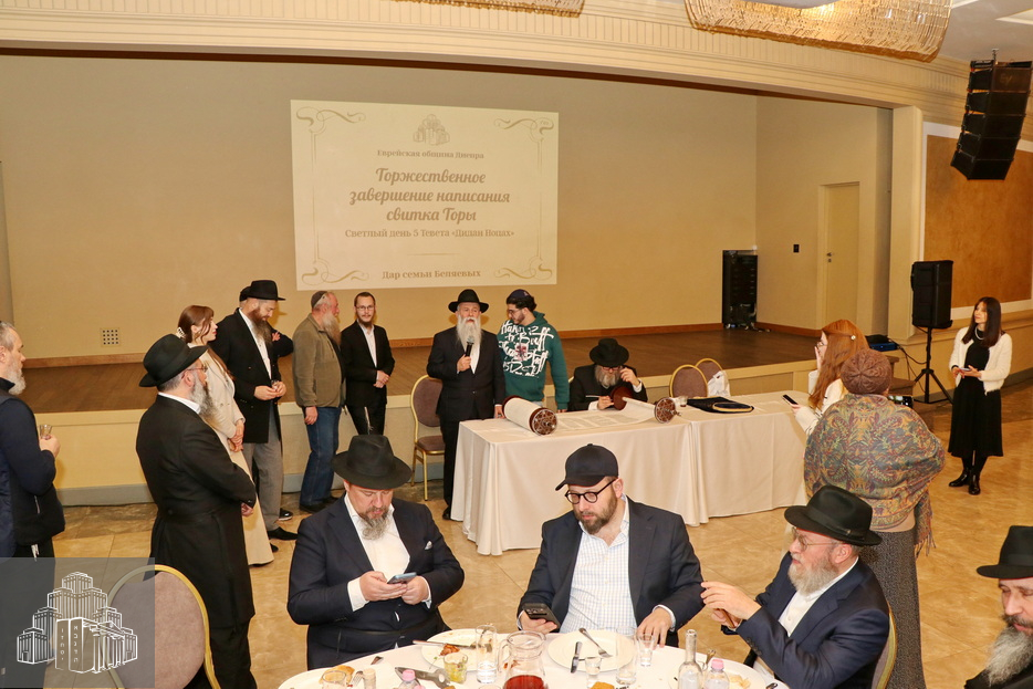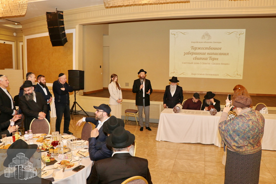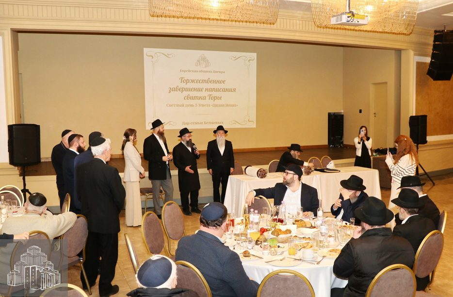 Церемонія завершення Сувою Тори проходила в залі «Ball Room» найбільшого у світі єврейського центру «Менора», у ній взяли участь численні члени Єврейської громади Дніпра, які від щирого серця дякували родині Бєляєвих і піднімали «лехаїм» за них та за зцілення їхнього сина.