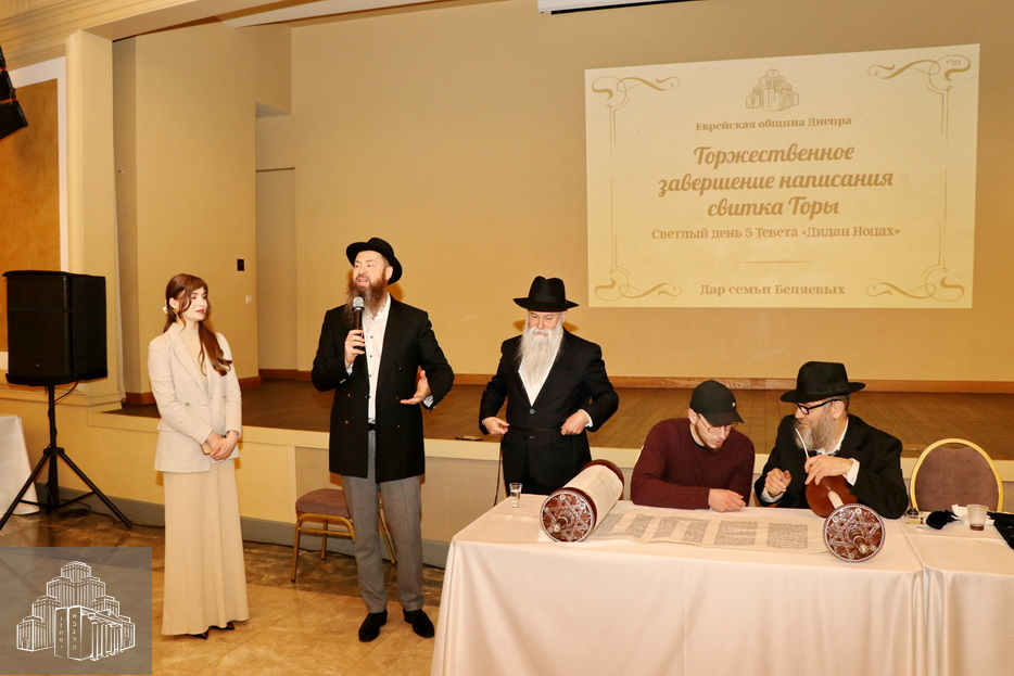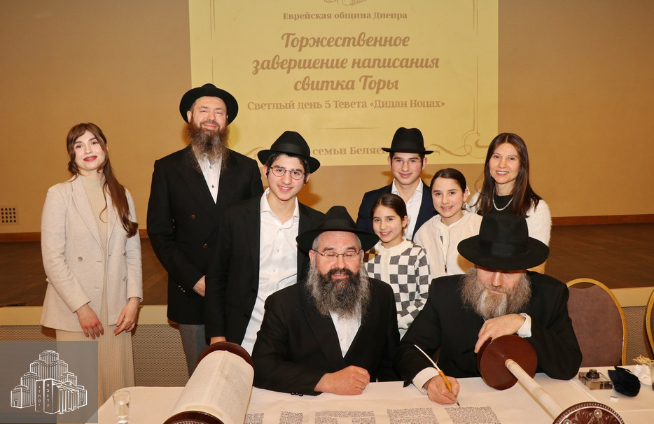 У День Дидан Ноцах у Єврейській громаді Дніпра відбулася важлива й яскрава подія – завершення та передання в дар єврейській громаді міста Суми нового Сувою Тори, написаного з ініціативи родини Бєляєвих – Йосефа Давида та Яель Естер – у заслугу їхньої дитини Леві Хаїма, для його повного й якнайшвидшого одужання та щасливого довголіття.