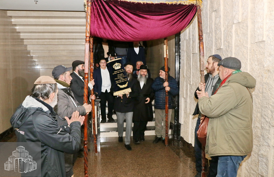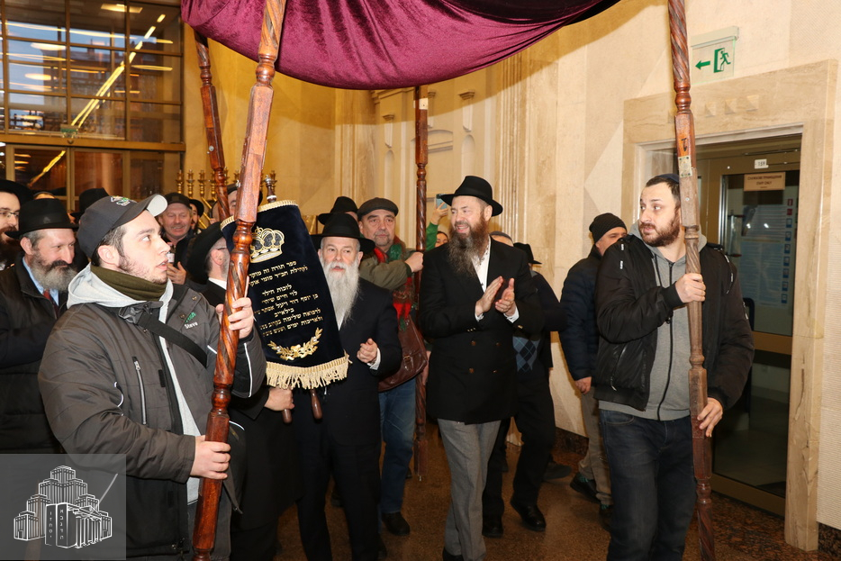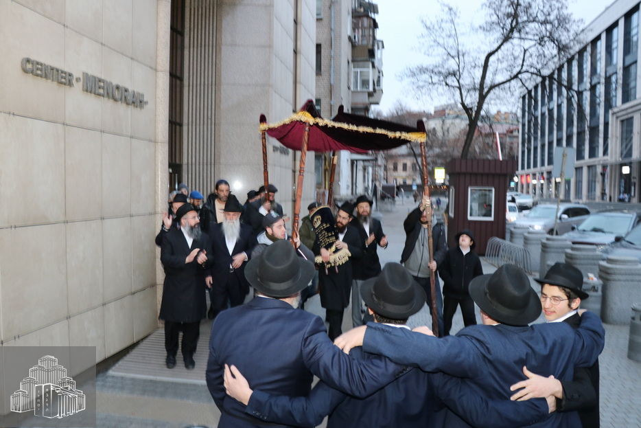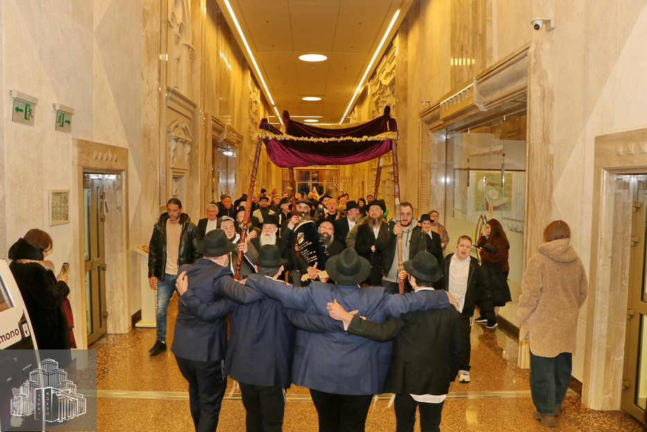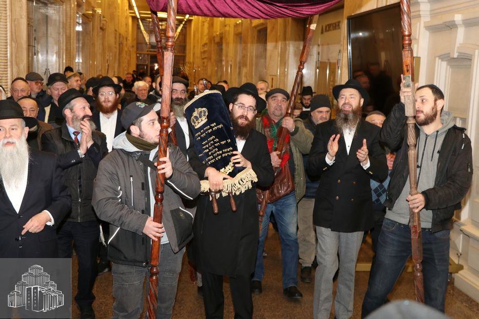 Після цього реб Йосеф Давид Бєляєв підняв завершений Сувій Тори, а син рабина Сум одягнув на нього спеціальний чохол. Під весільним балдахіном – Хупою – Сувій пронесли центром «Менора», а далі урочистою ходою вулицями, історичним кварталом Дніпра, і через головний вхід внесли до центральної синагоги «Золота Троянда», де відбулися Акафот.