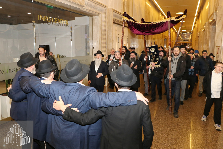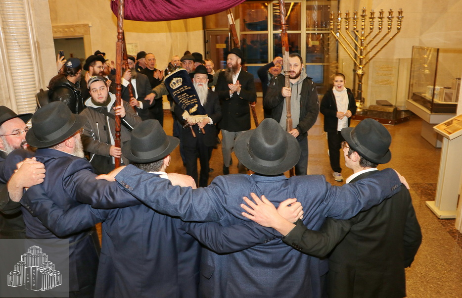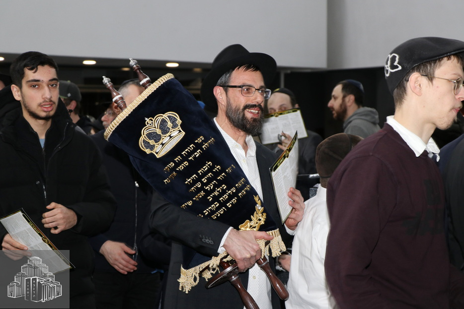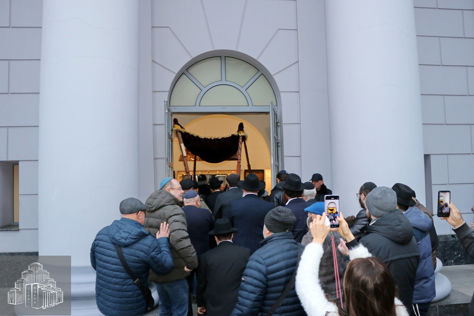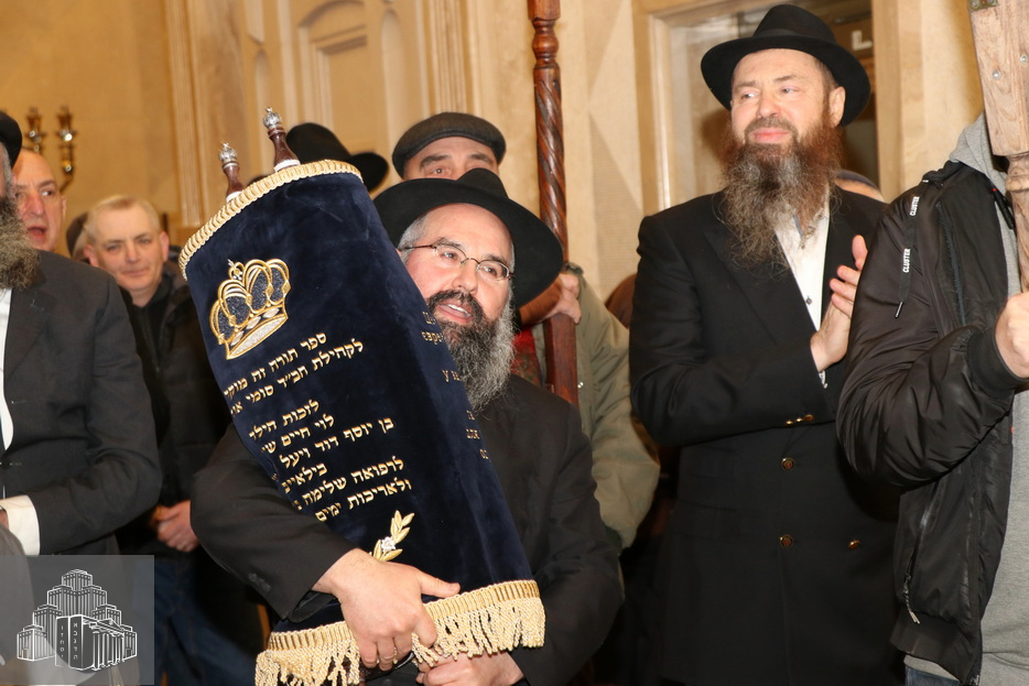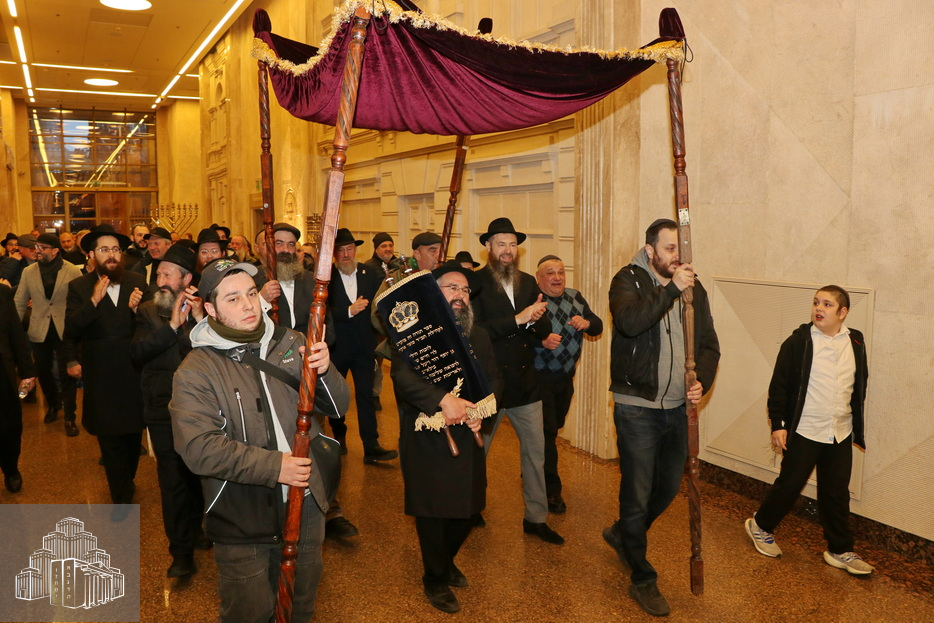 Після цього реб Йосеф Давид Бєляєв підняв завершений Сувій Тори, а син рабина Сум одягнув на нього спеціальний чохол. Під весільним балдахіном – Хупою – Сувій пронесли центром «Менора», а далі урочистою ходою вулицями, історичним кварталом Дніпра, і через головний вхід внесли до центральної синагоги «Золота Троянда», де відбулися Акафот.