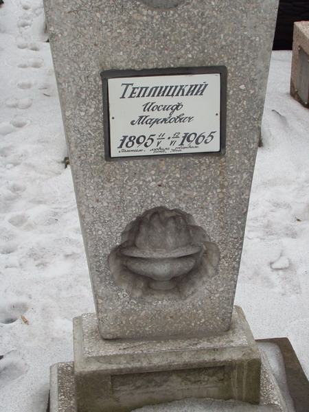 Блог / Кладбище / Теплицкий Иосиф Маркович Теплицкий Иосиф Маркович admin | 19 Shevat 5785 (17.02.2025) 0 Дата рождения: 1895-05-11 Дата смерти: 1965-06-12 № участка: 4М Ряд: 3 № захоронения: 20 Комментарии:
