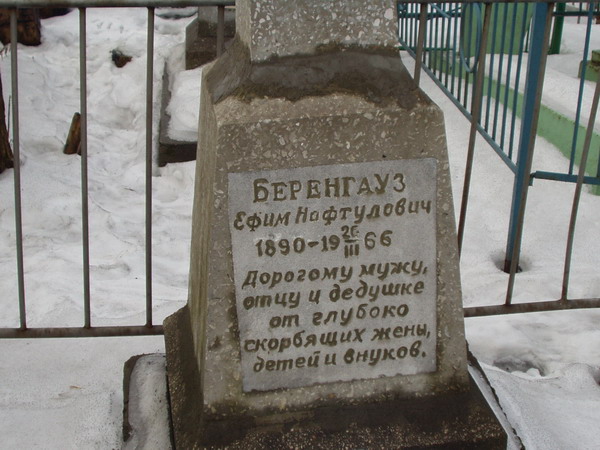 Архивы для admin / Страница 100 Беренгауз Ефим Нафтулович admin | 19 Shevat 5785 (17.02.2025) 0 Дата рождения: 1890 Дата смерти: 1966-03-26 № участка: 4М Ряд: 7 № захоронения: 18 Комментарии:
