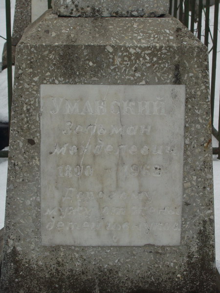 Архивы для admin / Страница 21 Уманский Зельман Менделевич admin | 19 Shevat 5785 (17.02.2025) 0 Дата рождения: 1890 Дата смерти: 1962 № участка: 3М Ряд: 1 № захоронения: 11 Комментарии:
