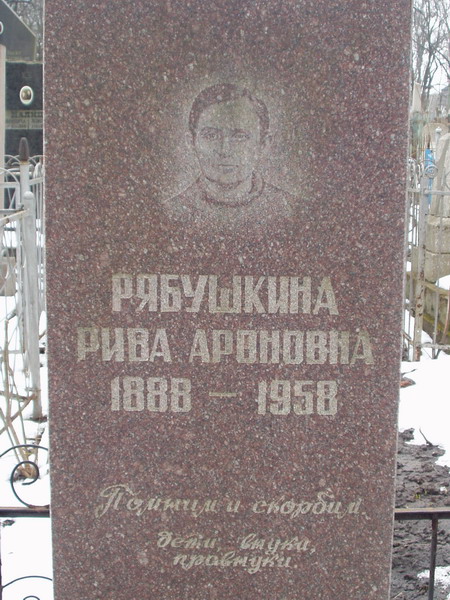 Архивы для admin / Страница 30 Рябушкина Рива Ароновна admin | 19 Shevat 5785 (17.02.2025) 0 Дата рождения: 1888 Дата смерти: 1958 № участка: 1Ж Ряд: 4 № захоронения: 17 Комментарии: