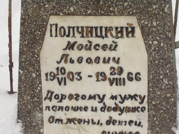 Архивы для admin / Страница 38 Полчитский Моисей Львович admin | 19 Shevat 5785 (17.02.2025) 0 Дата рождения: 1903-06-10 Дата смерти: 1966-08-29 № участка: 4М Ряд: 8 № захоронения: 15 Комментарии: