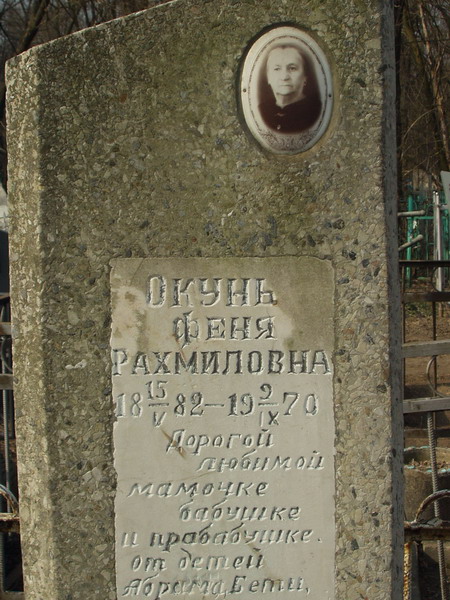 Архивы для admin / Страница 43 Окунь Феня Рахмиловна admin | 19 Shevat 5785 (17.02.2025) 0 Дата рождения: 1882-05-15 Дата смерти: 1970-09-09 № участка: 5 ев Ряд: 15 № захоронения: 9 Комментарии:
