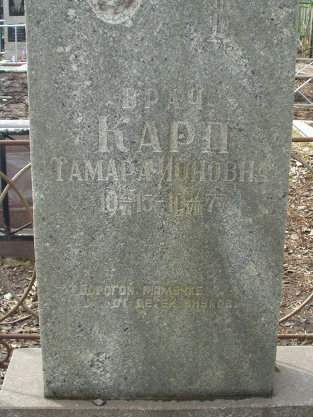 Архивы для admin / Страница 67 Карпман Иосиф Мордухович admin | 19 Shevat 5785 (17.02.2025) 0 Дата рождения: 1882-06-14 Дата смерти: 1963-03-02 № участка: 3М Ряд: 7 № захоронения: 10 Комментарии: