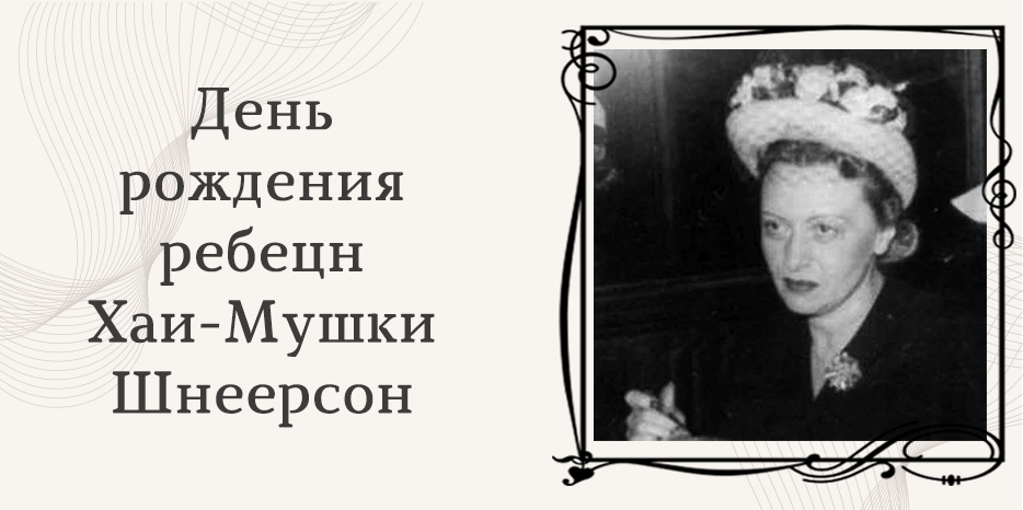Сегодня вечером, с наступлением 25 числа месяца Адар, весь мир отмечает 125-ю годовщину со дня рождения праведной ребецн Хаи-Мушки Шнеерсон, супруги Седьмого Любавического Ребе Менахема-Мендела Шнеерсона и дочери Шестого Ребе ХаБаДа. Хотя праведная ребецн Хая-Мушка носила статус «супруги Царя и дочери Царя», ибо и ее отец, и муж имели высочайший титул Главы поколения – Любавического … 125 лет со дня рождения праведной ребецн Хаи-Мушки Шнеерсон