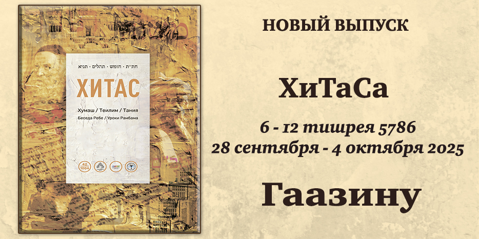 В разделе «ХиТаС» нашего сайта размещен новый выпуск ХиТаС на неделю с 28 сентября по 4 октября. «ХиТаС» в формате PDF для прямого просмотра или скачивания Гаазину Обратите венимание!Наш сайт только размещает присылаемые ему файлы, а готовит выпуски «ХиТаС», как свой проект – STL (фонд «Шиурей Тора Любавич»), благодаря поддержке Еврейской общины Днепра и Федерации … Новый выпуск ХиТаС на нашем сайте! Глава «Гаазину»