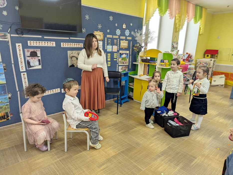 Программа также включала веселые тематические игры, которые помогали детям лучше усвоить услышанное через движение и взаимодействие. Отдельной частью стала небольшая сценка по мотивам рассказанной истории, в которой воспитанники смогли принять участие, проживая сюжет через игру. Такой формат сделал мероприятие не только познавательным, но и по-настоящему увлекательным для детей. Фарбренген прошел живо, радостно и с большим эмоциональным откликом у малышей, объединив еврейский смысл, игру и теплую атмосферу общности.